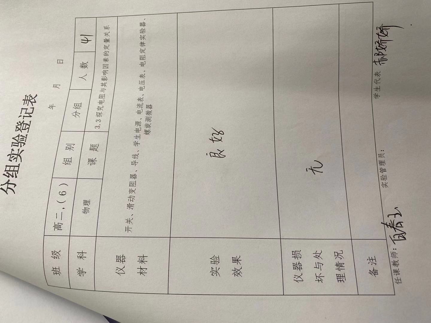 实验登记表