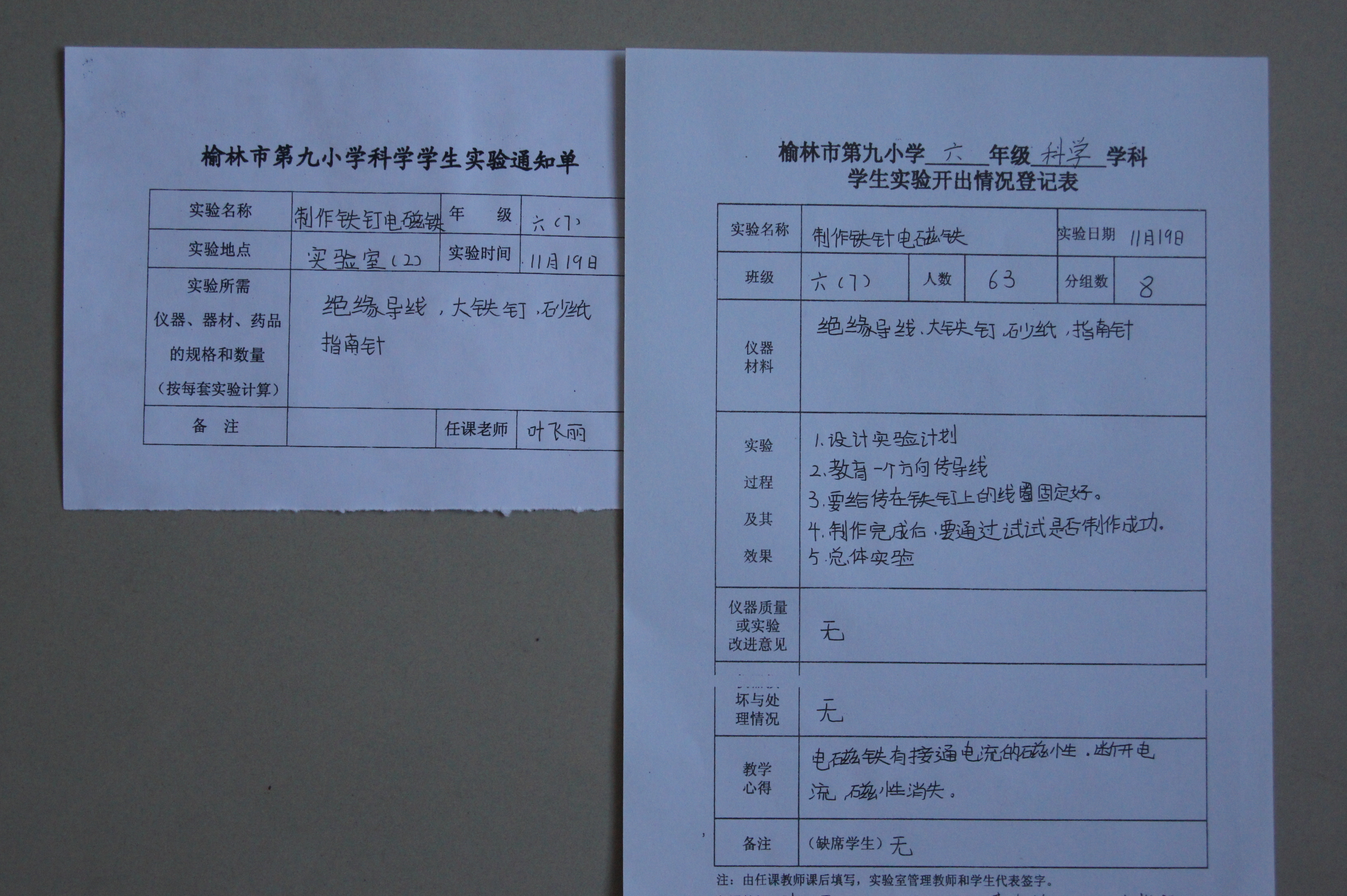 实验登记表