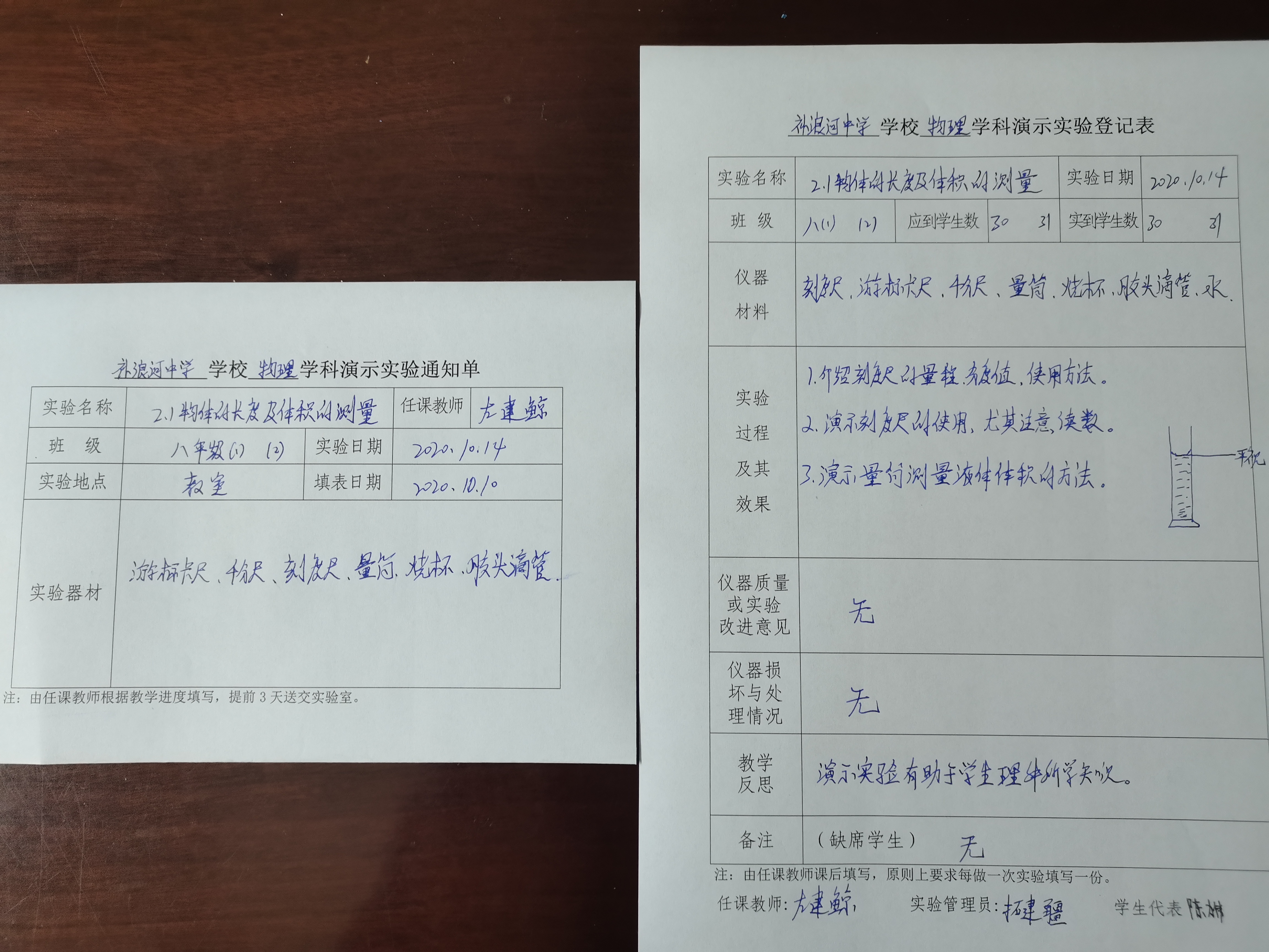 实验登记表