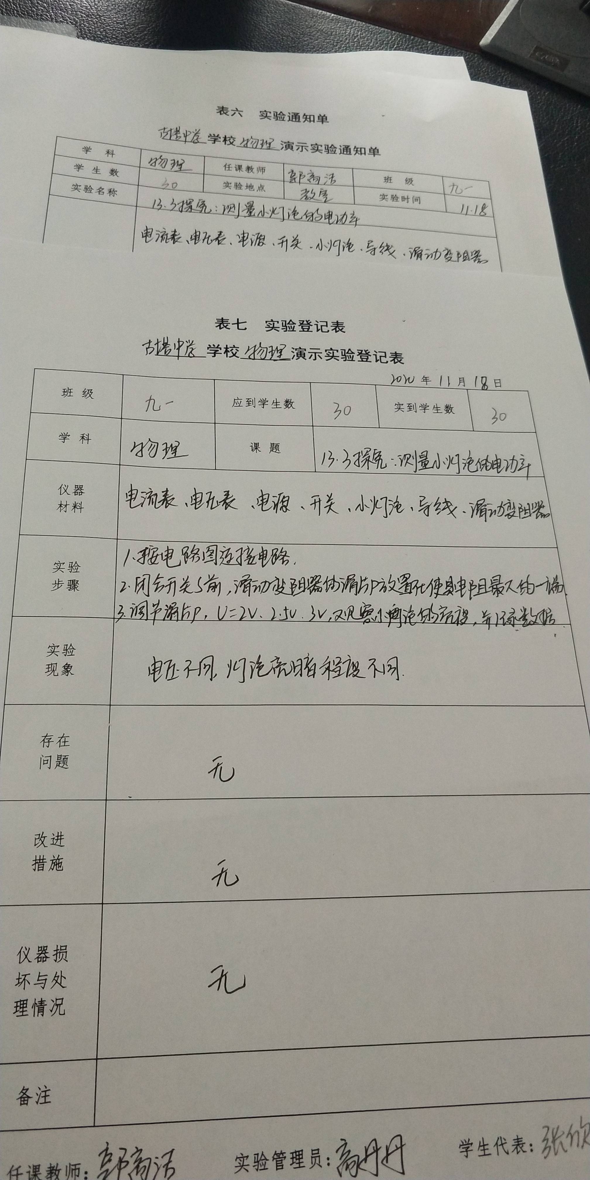 实验登记表