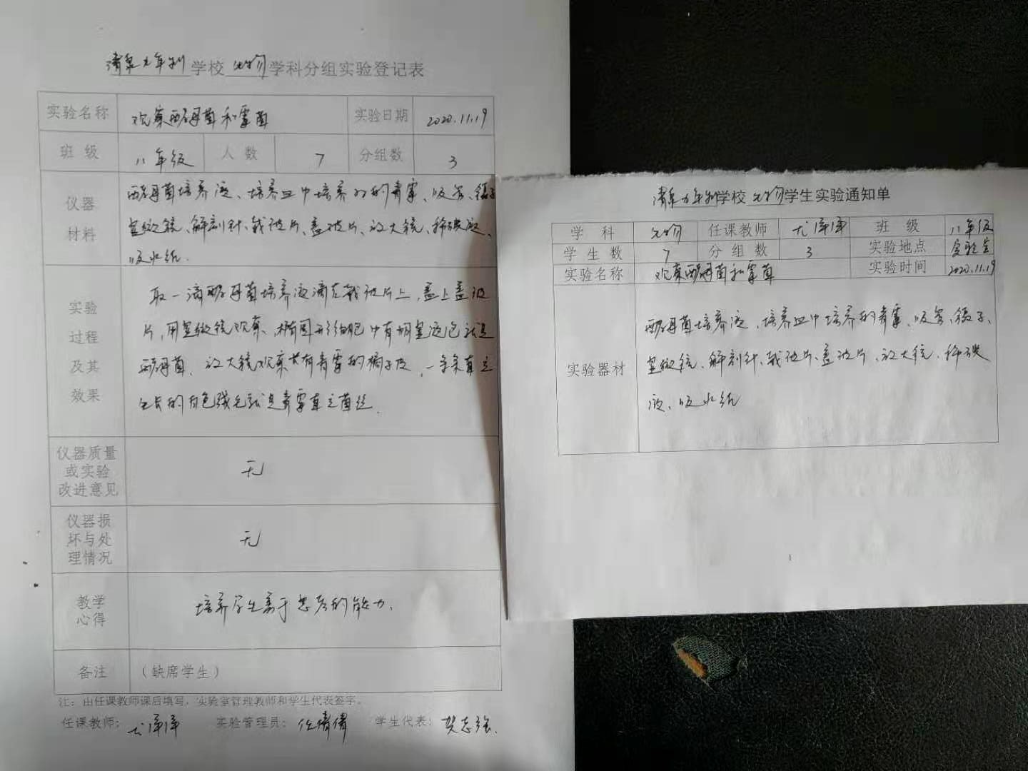 实验登记表