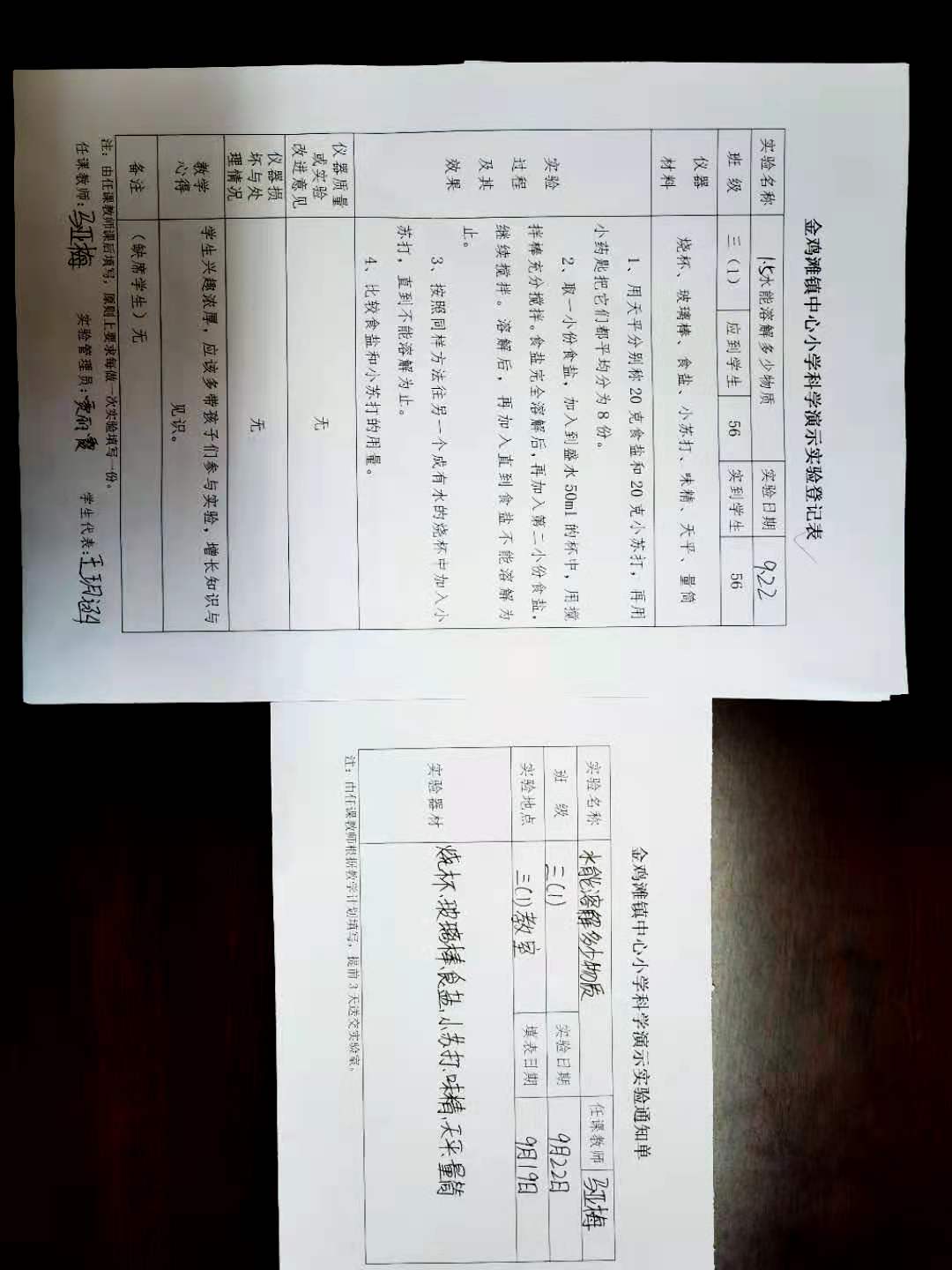 实验登记表