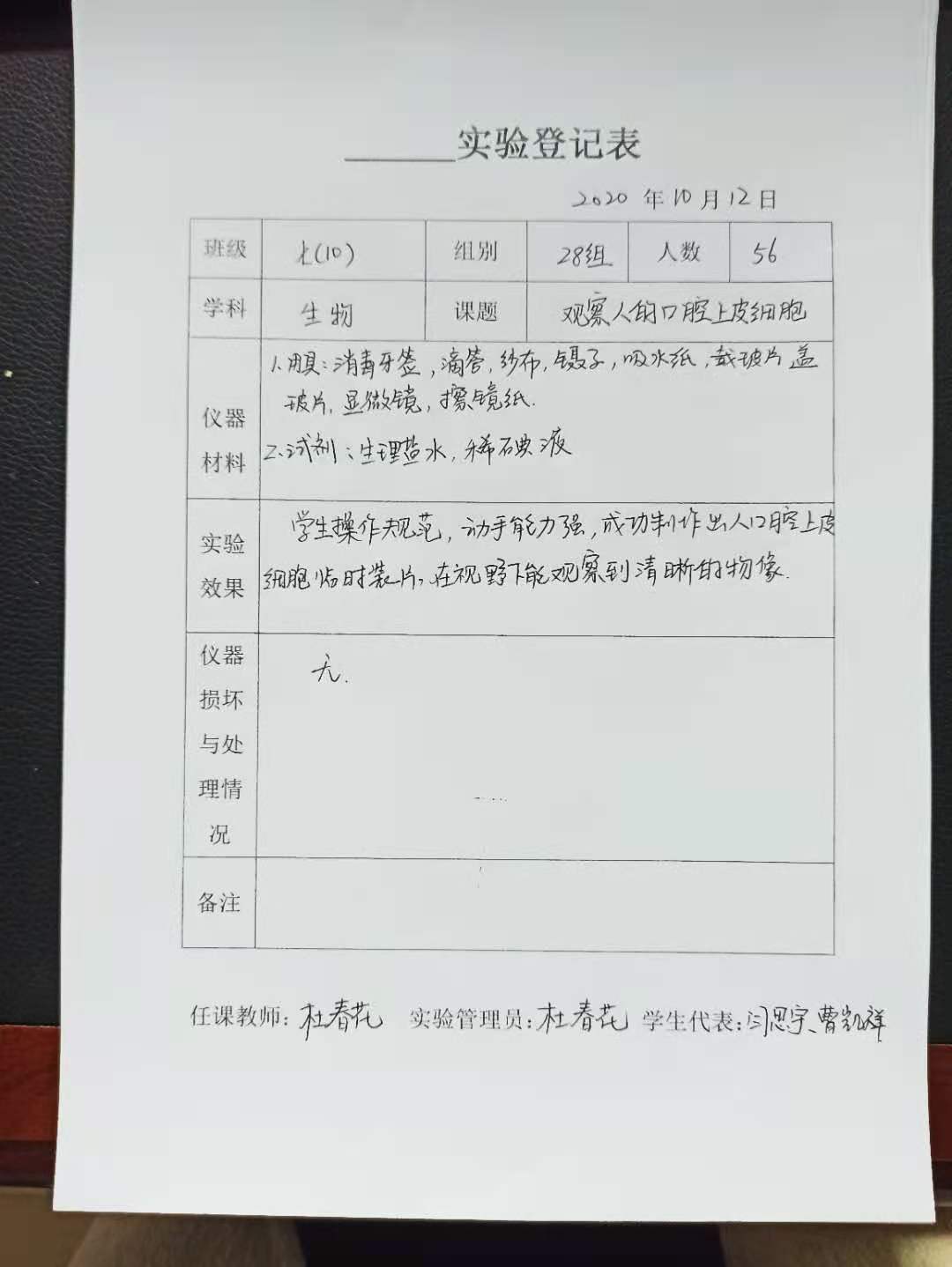 实验登记表