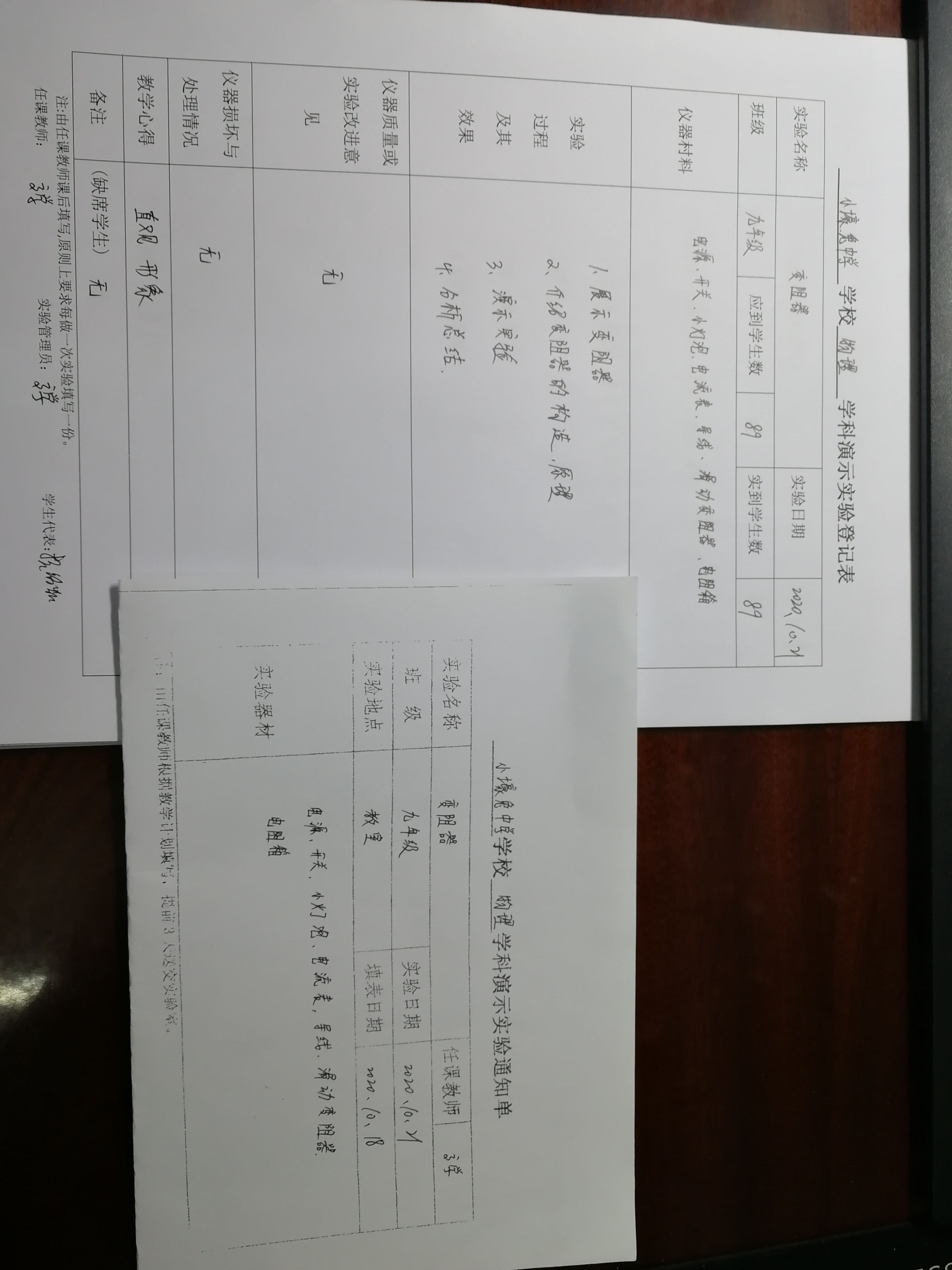 实验登记表