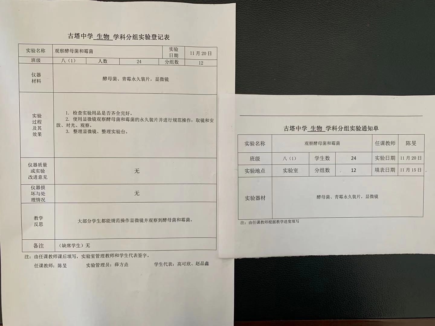 实验登记表