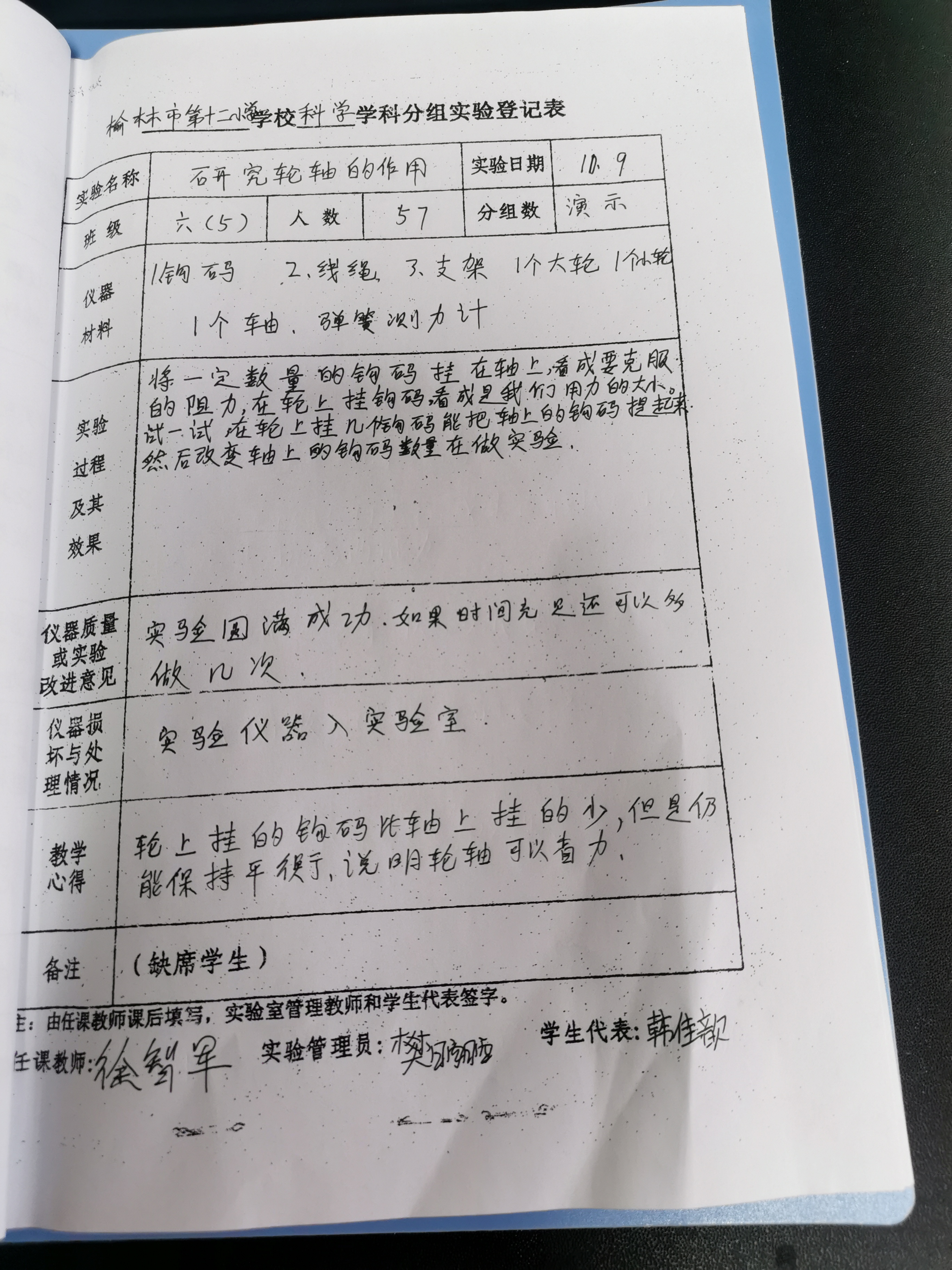 实验登记表