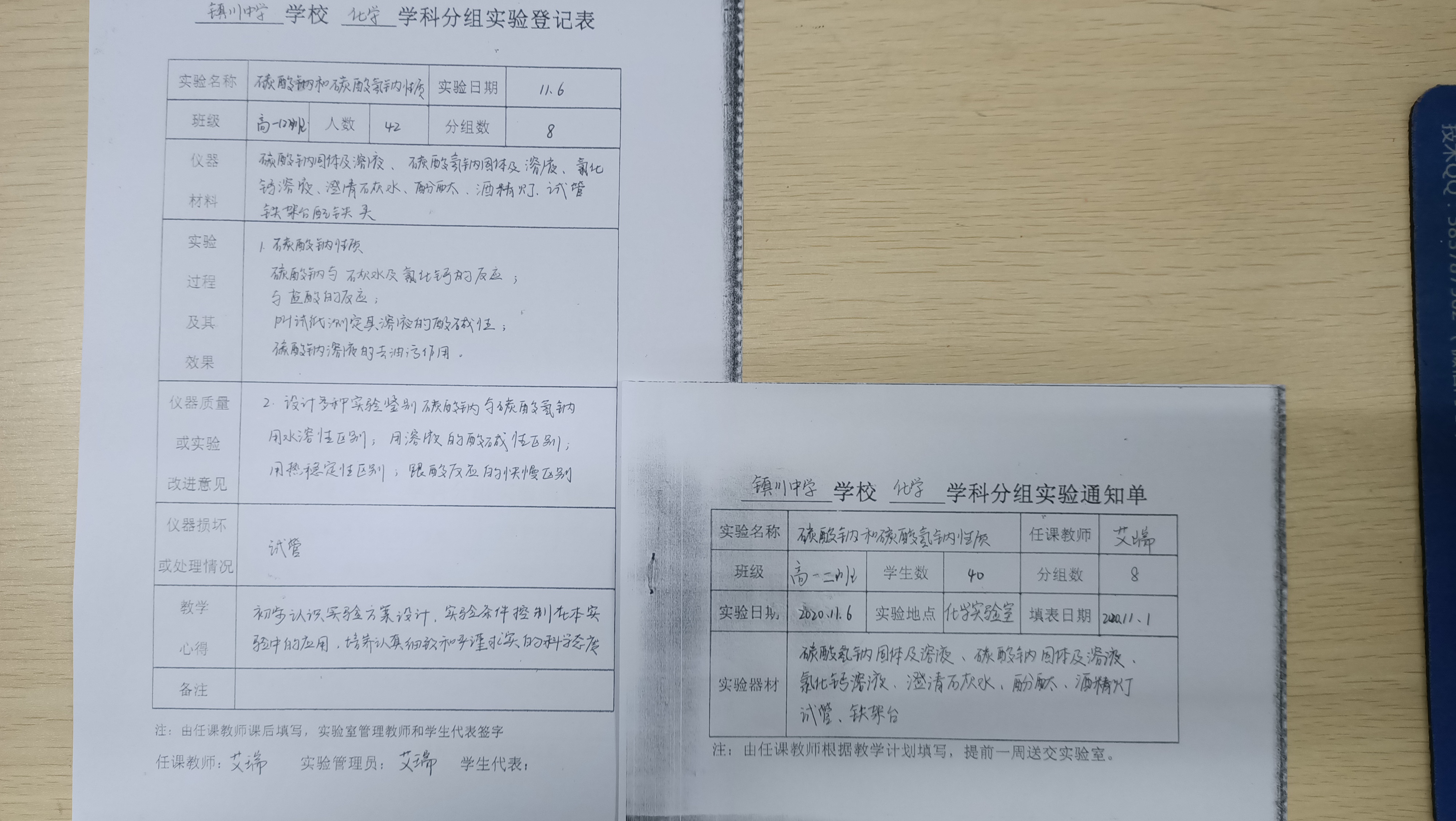 实验登记表