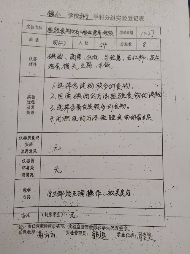 实验登记表