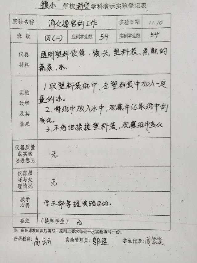 实验登记表