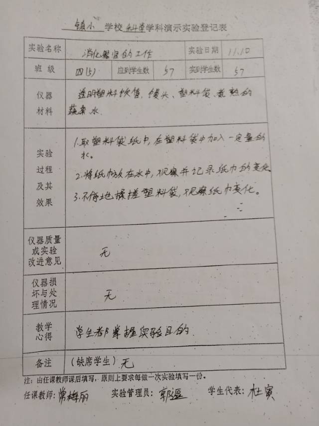 实验登记表