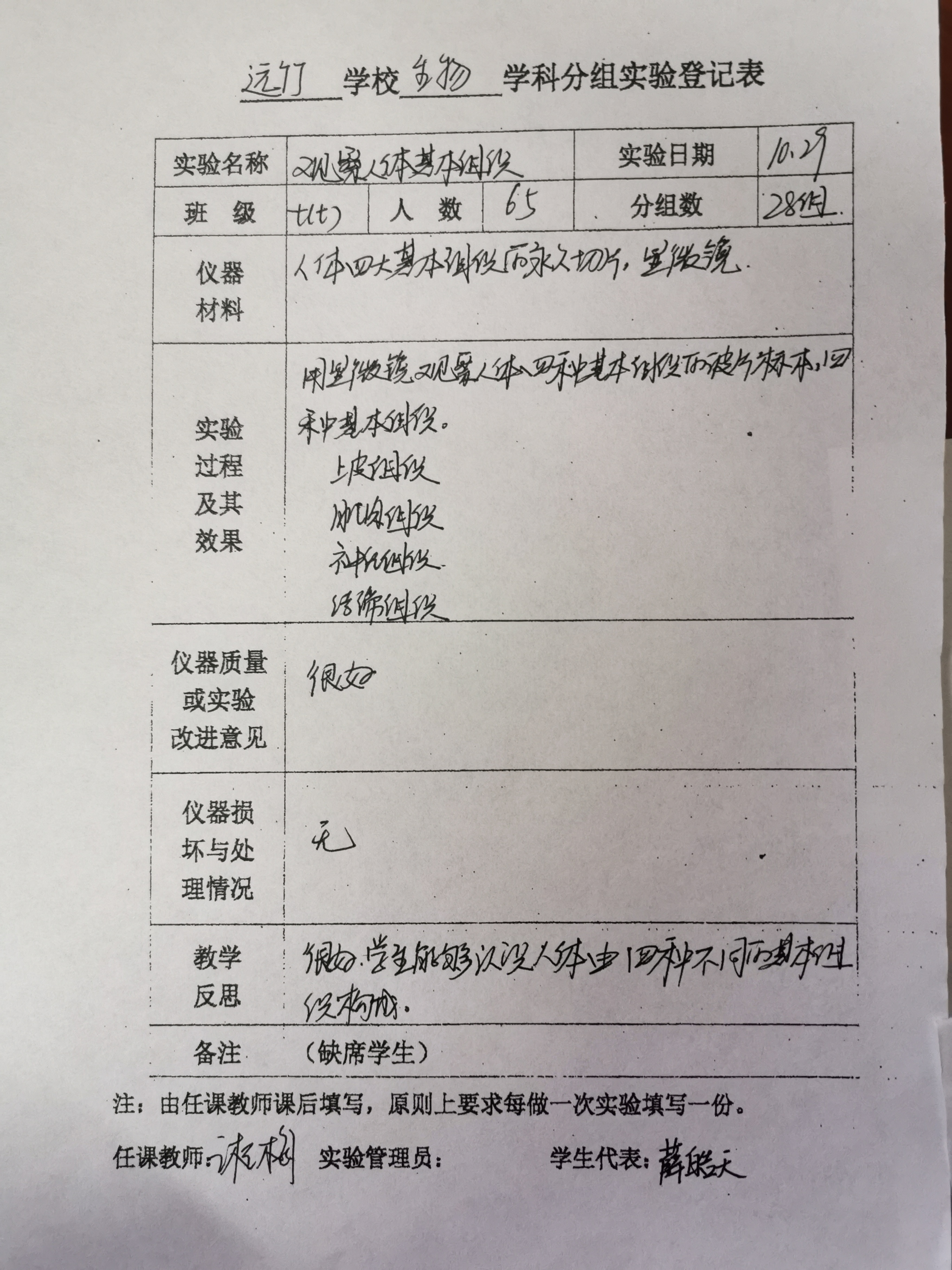 实验登记表