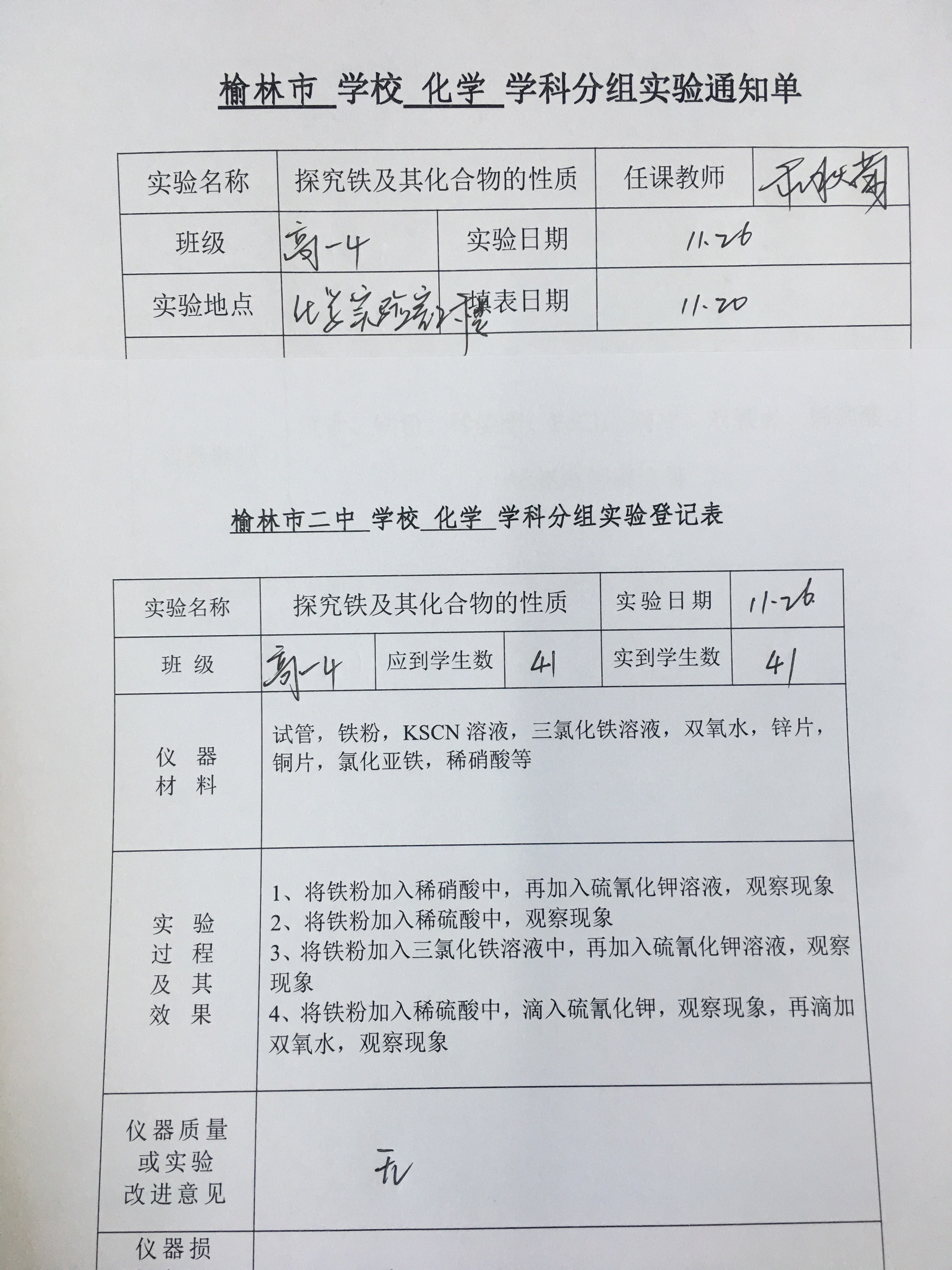 实验登记表