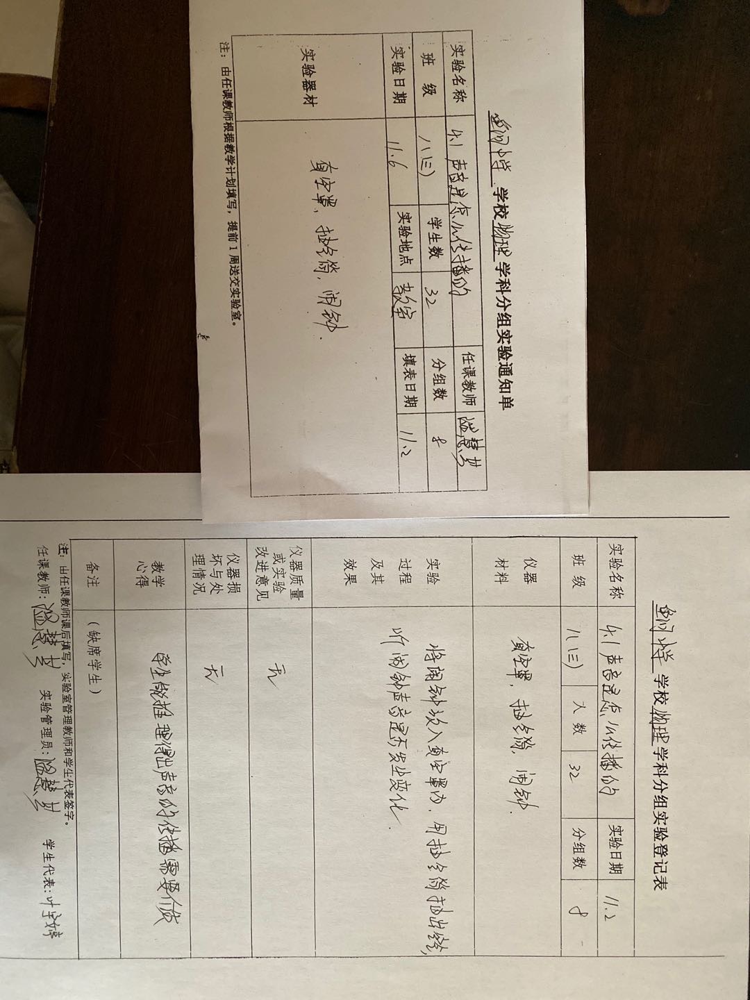 实验登记表