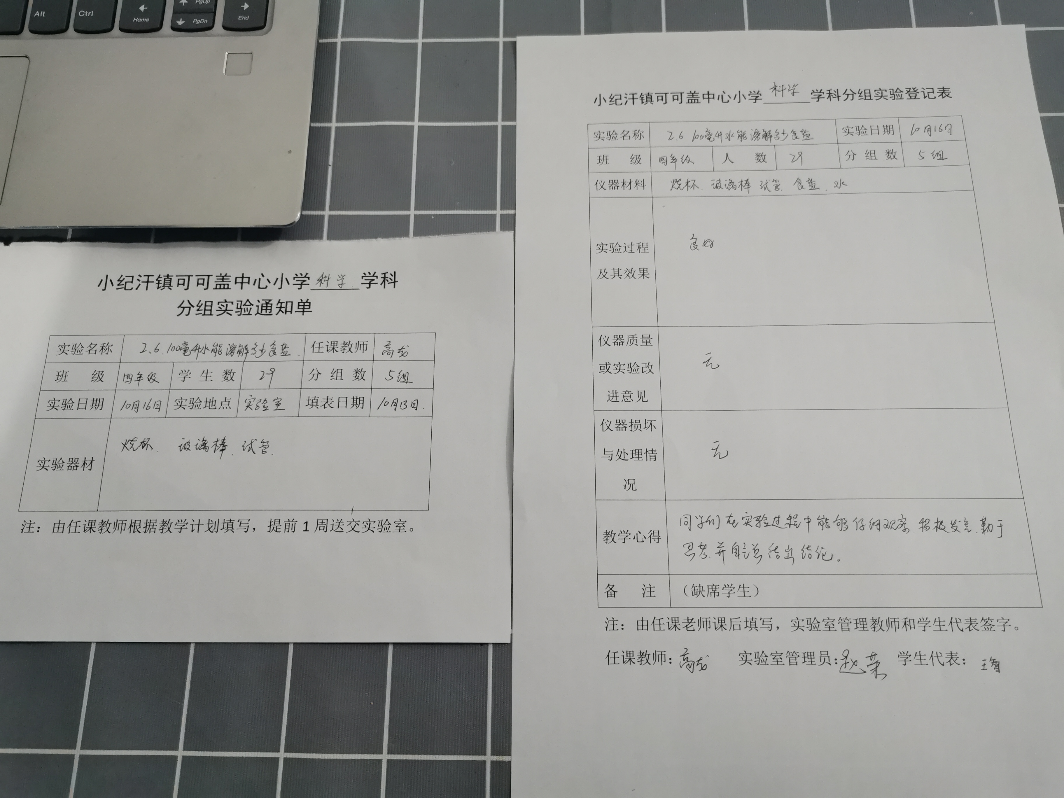 实验登记表