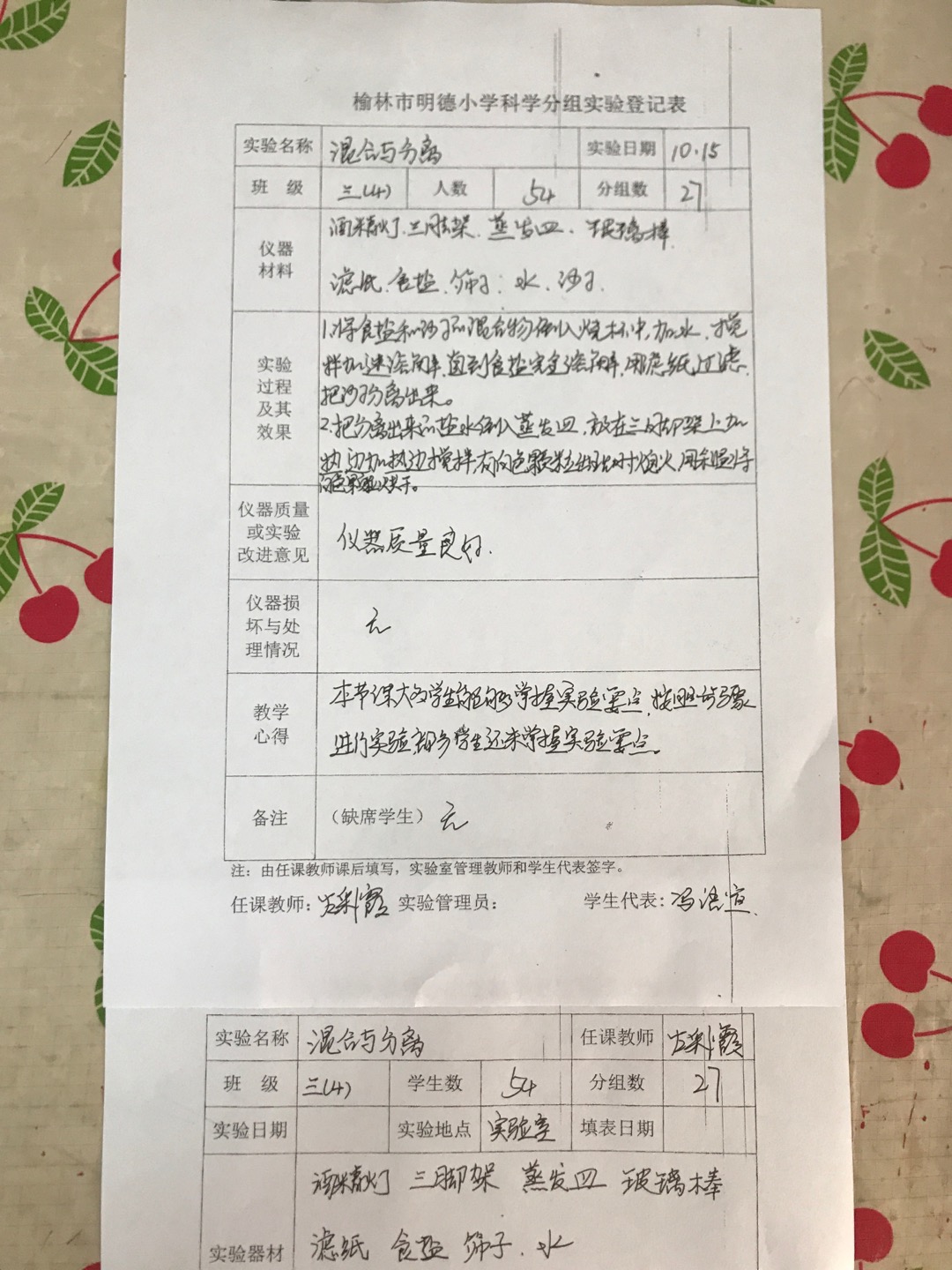 实验登记表
