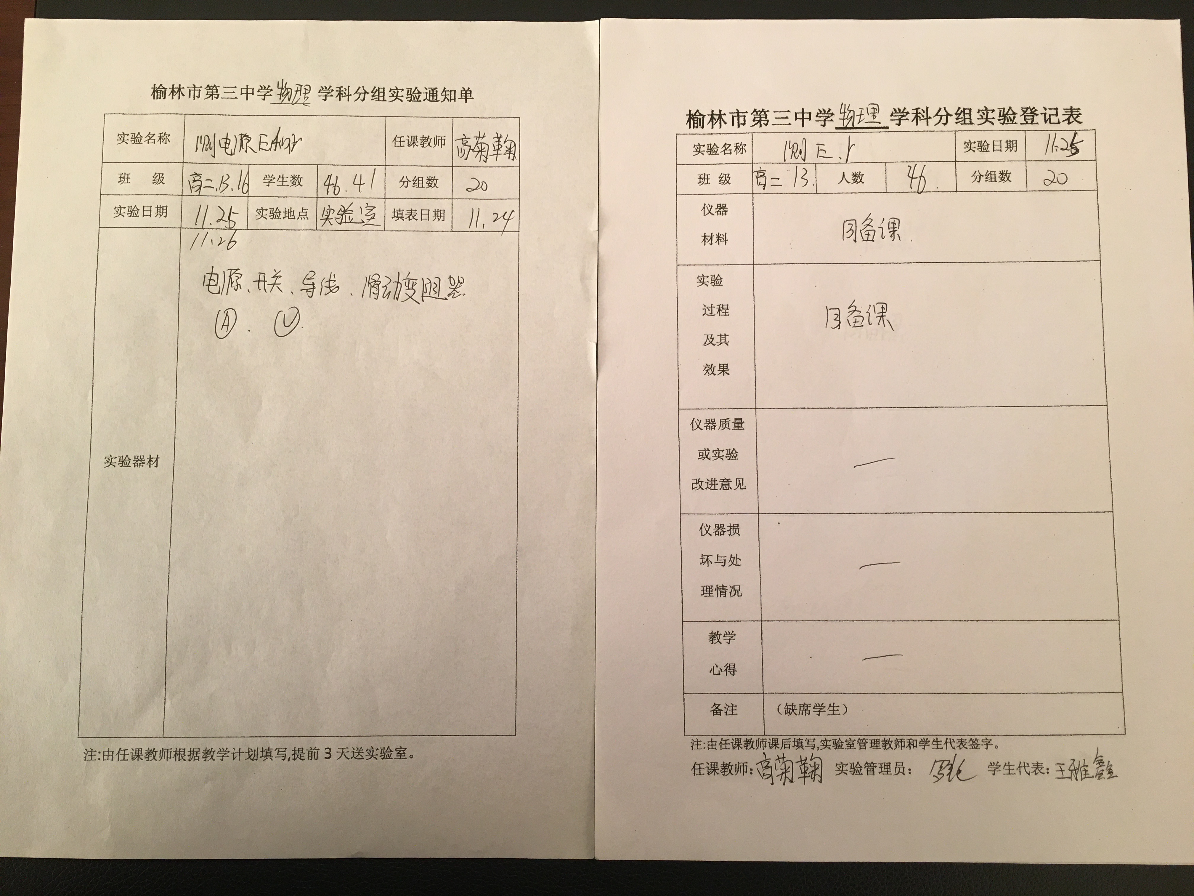 实验登记表