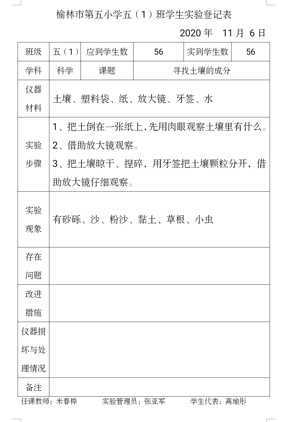 实验登记表