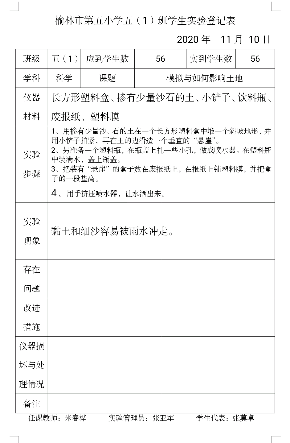 实验登记表