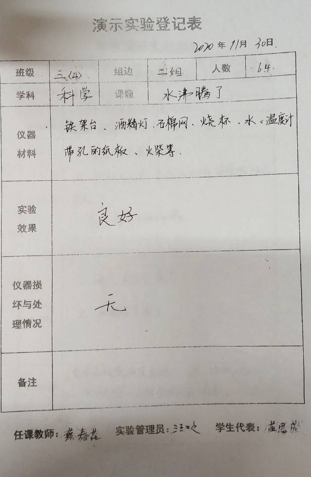 实验登记表