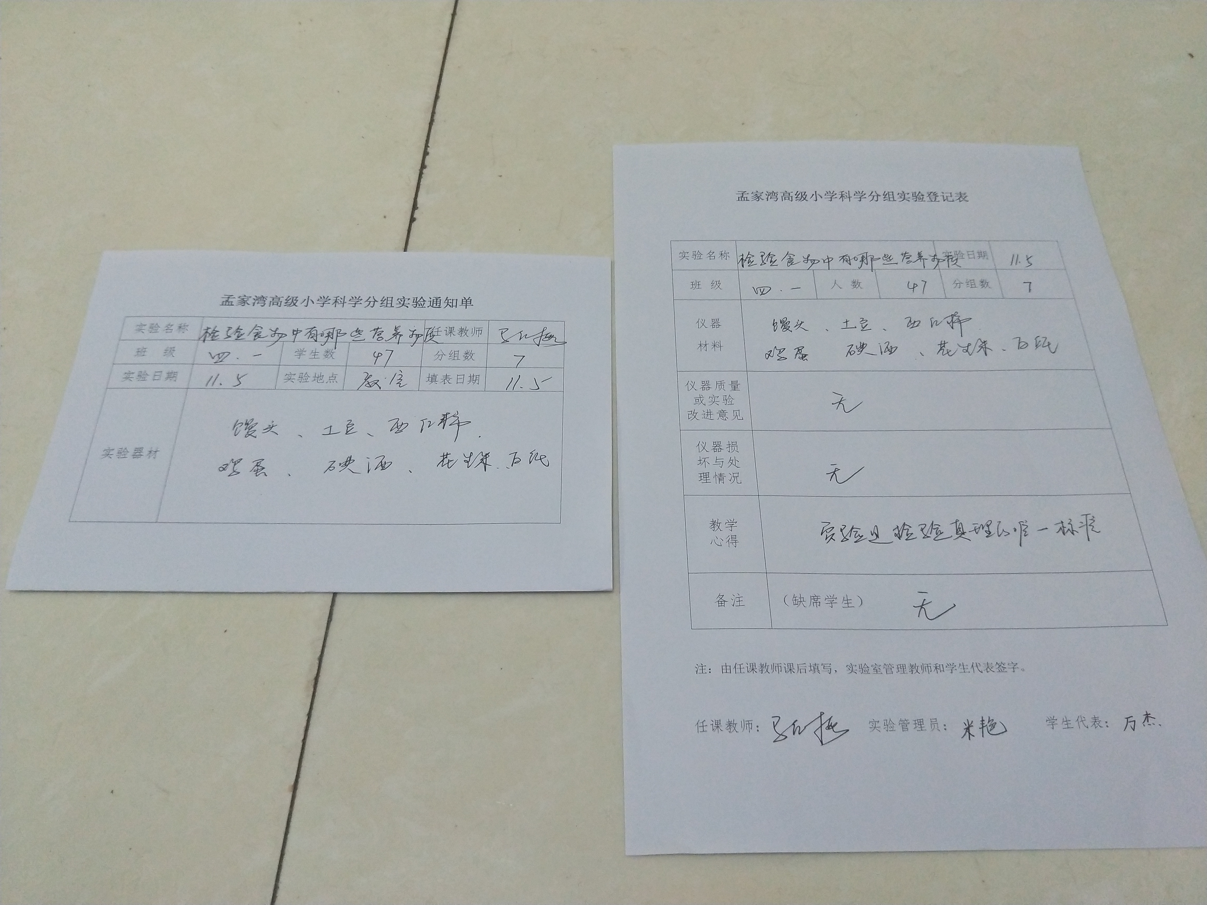 实验登记表