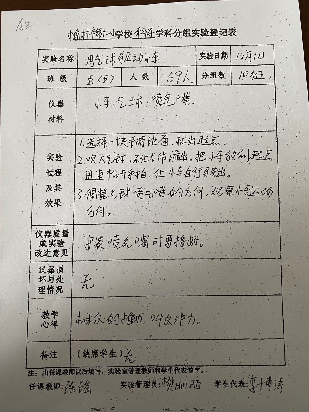 用气球驱动小车