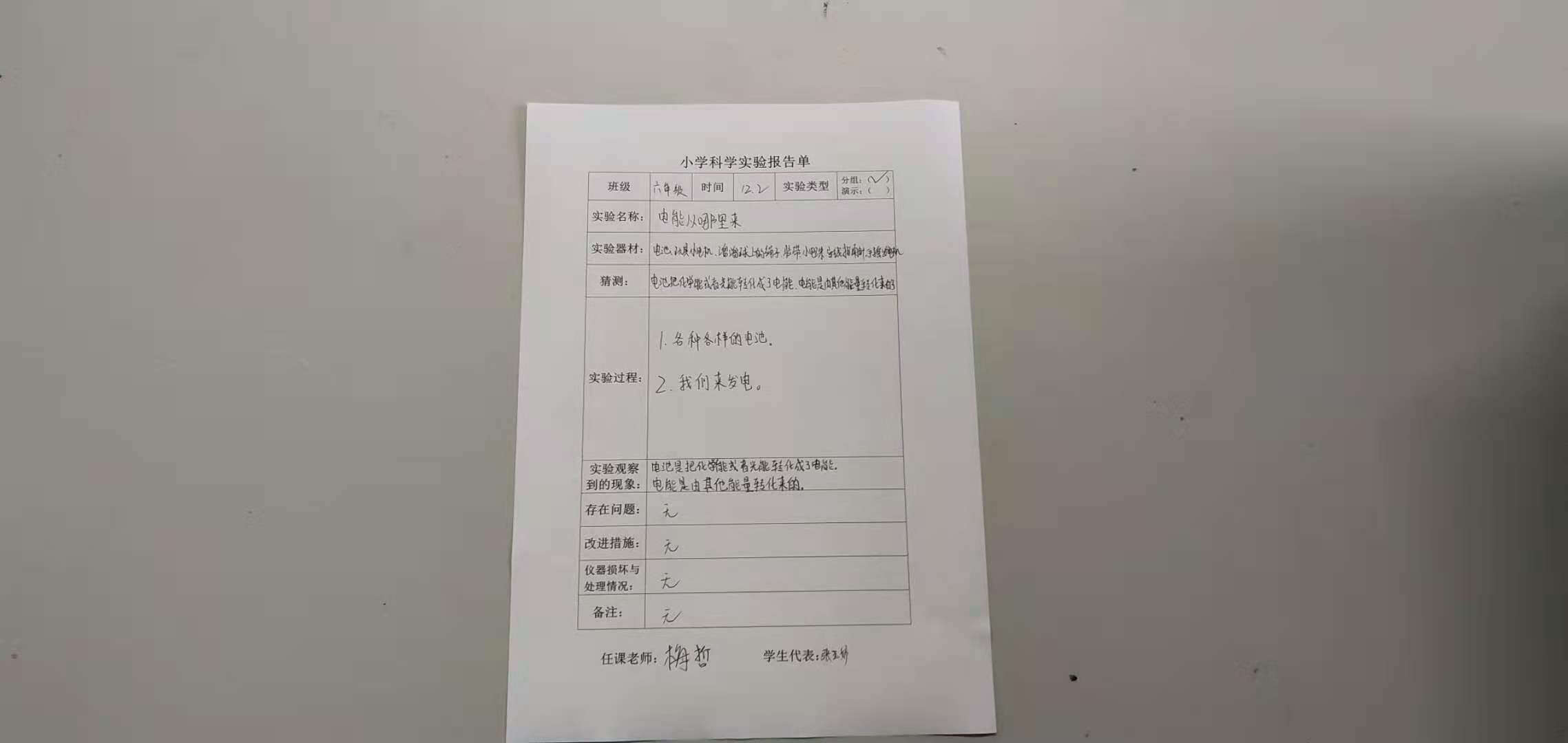实验登记表