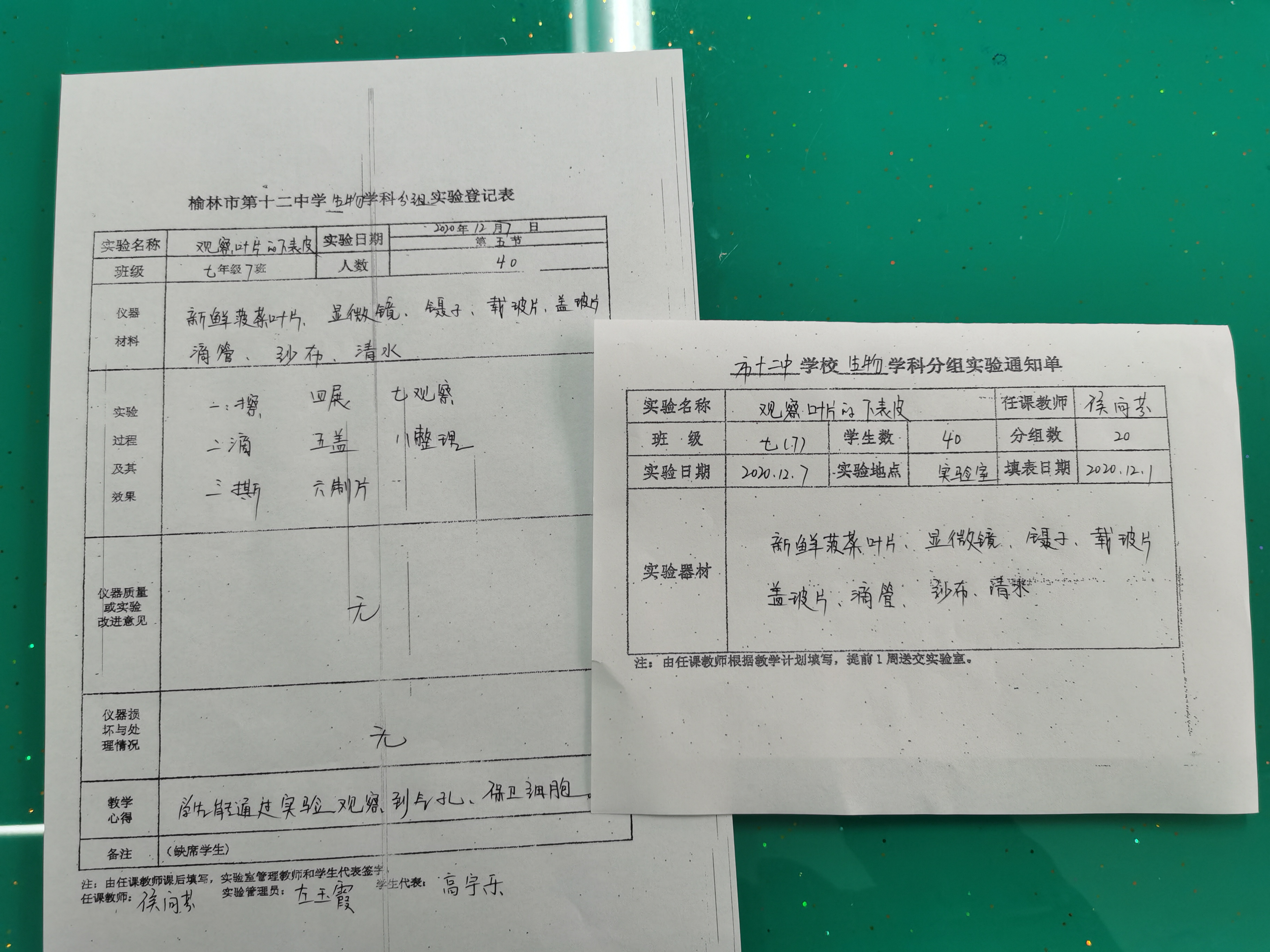 实验登记表