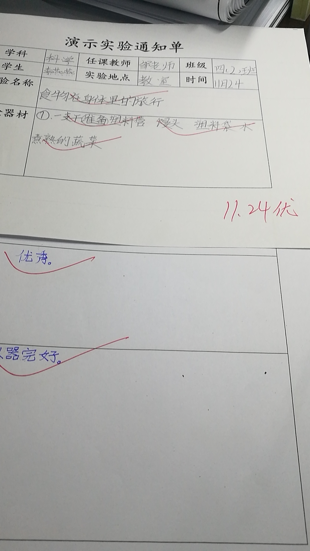 实验登记表