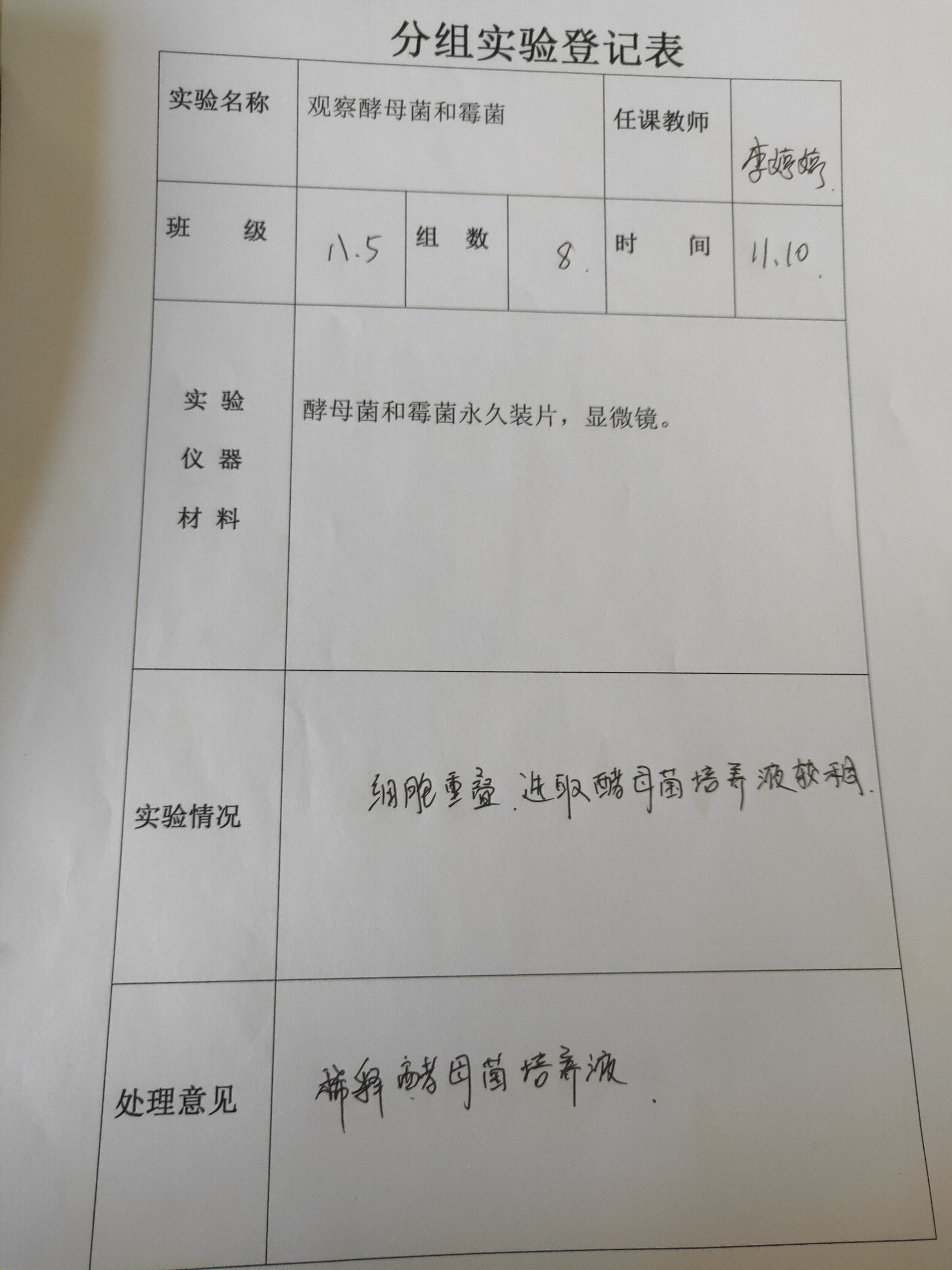 实验登记表