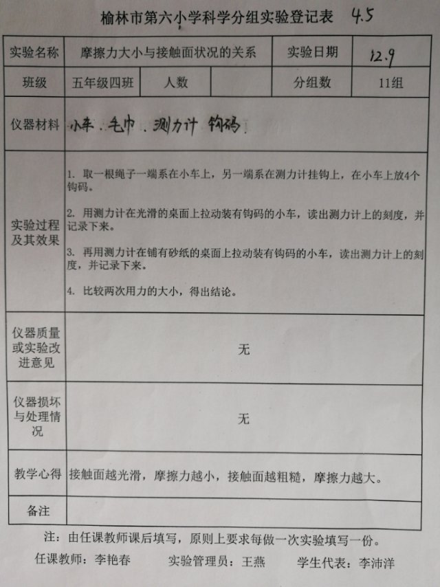 实验登记表