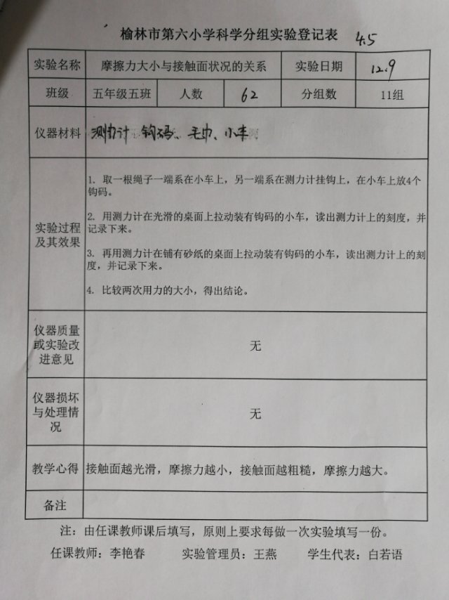 实验登记表
