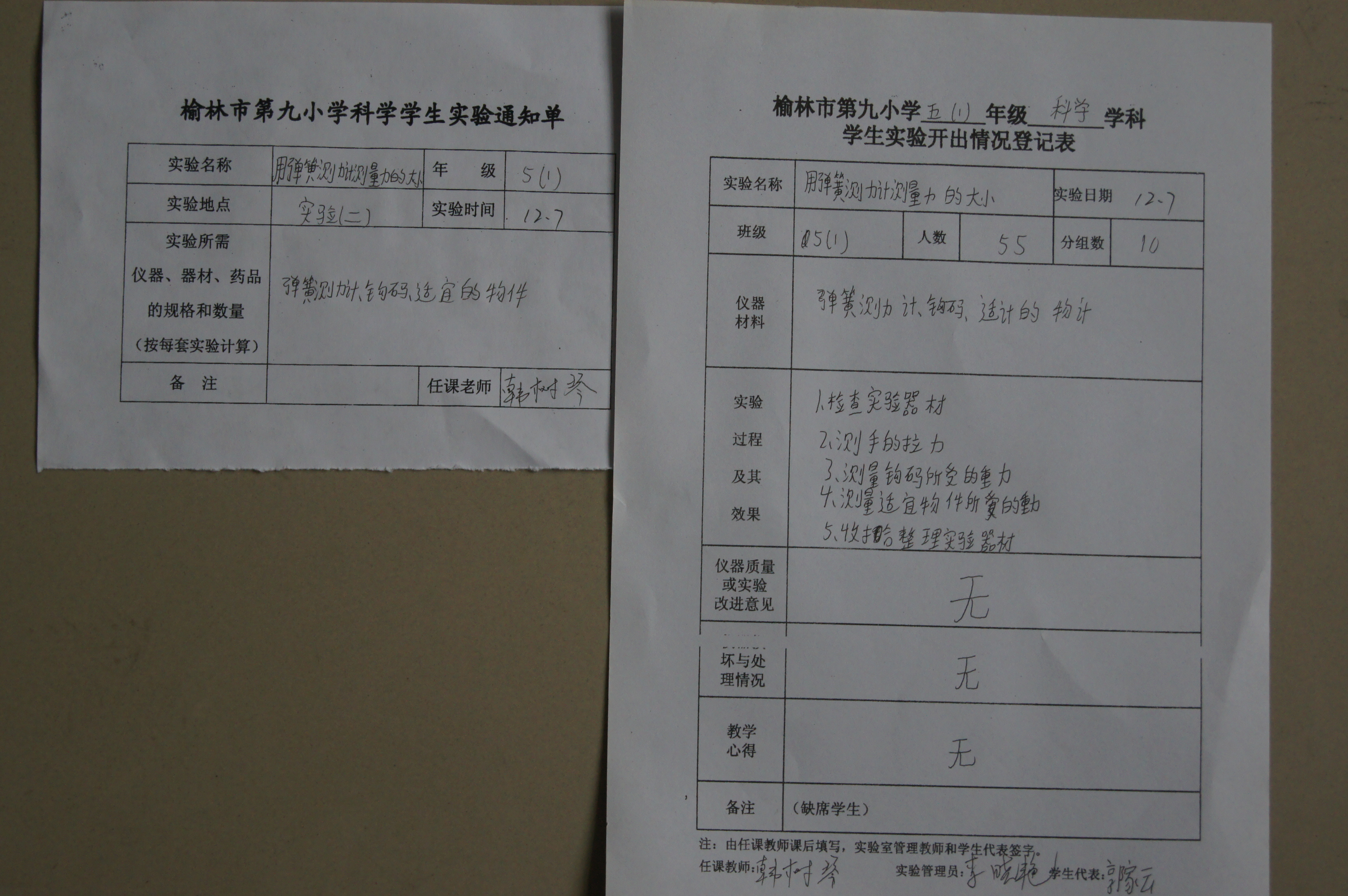 实验登记表
