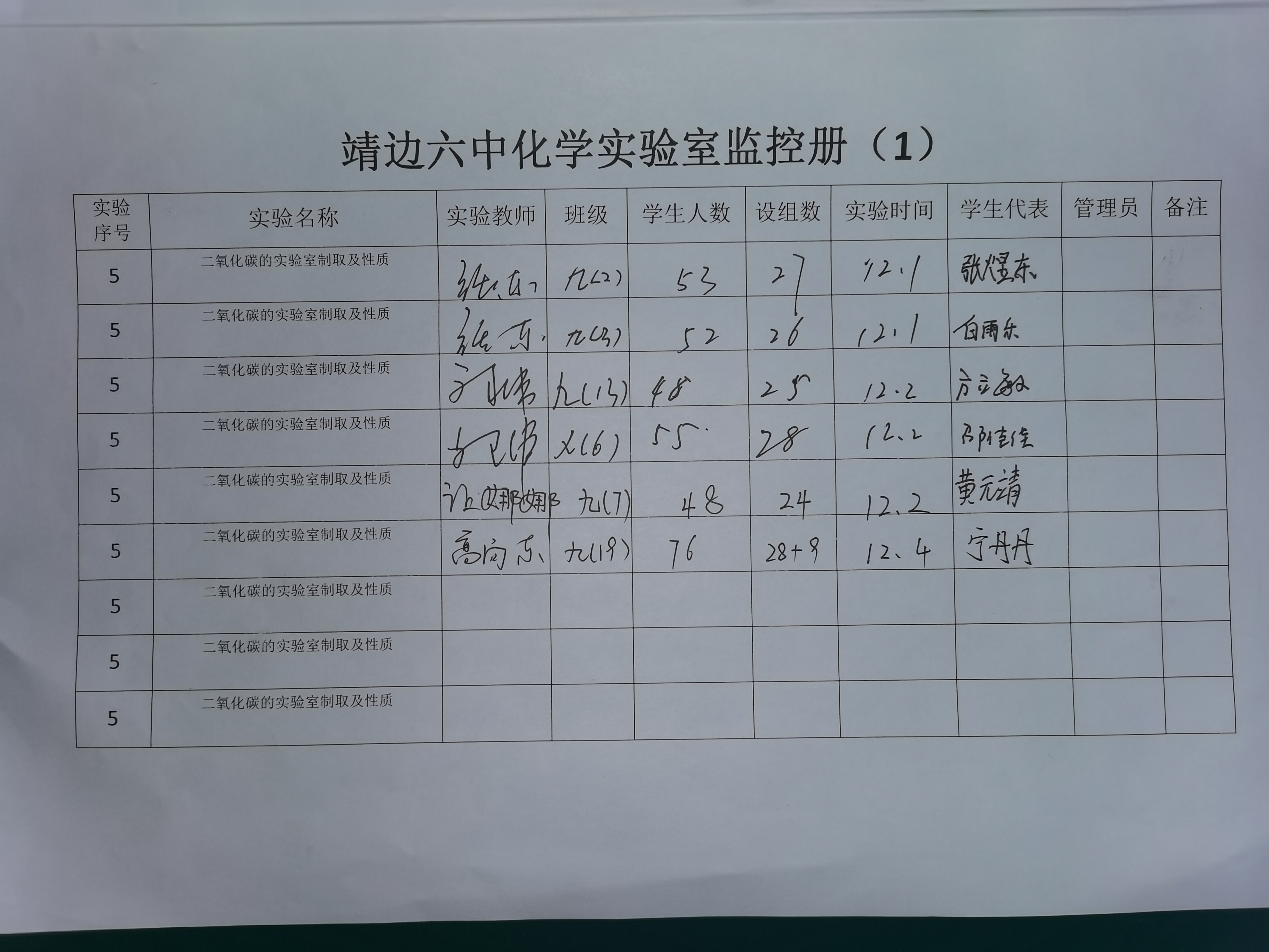 实验登记表