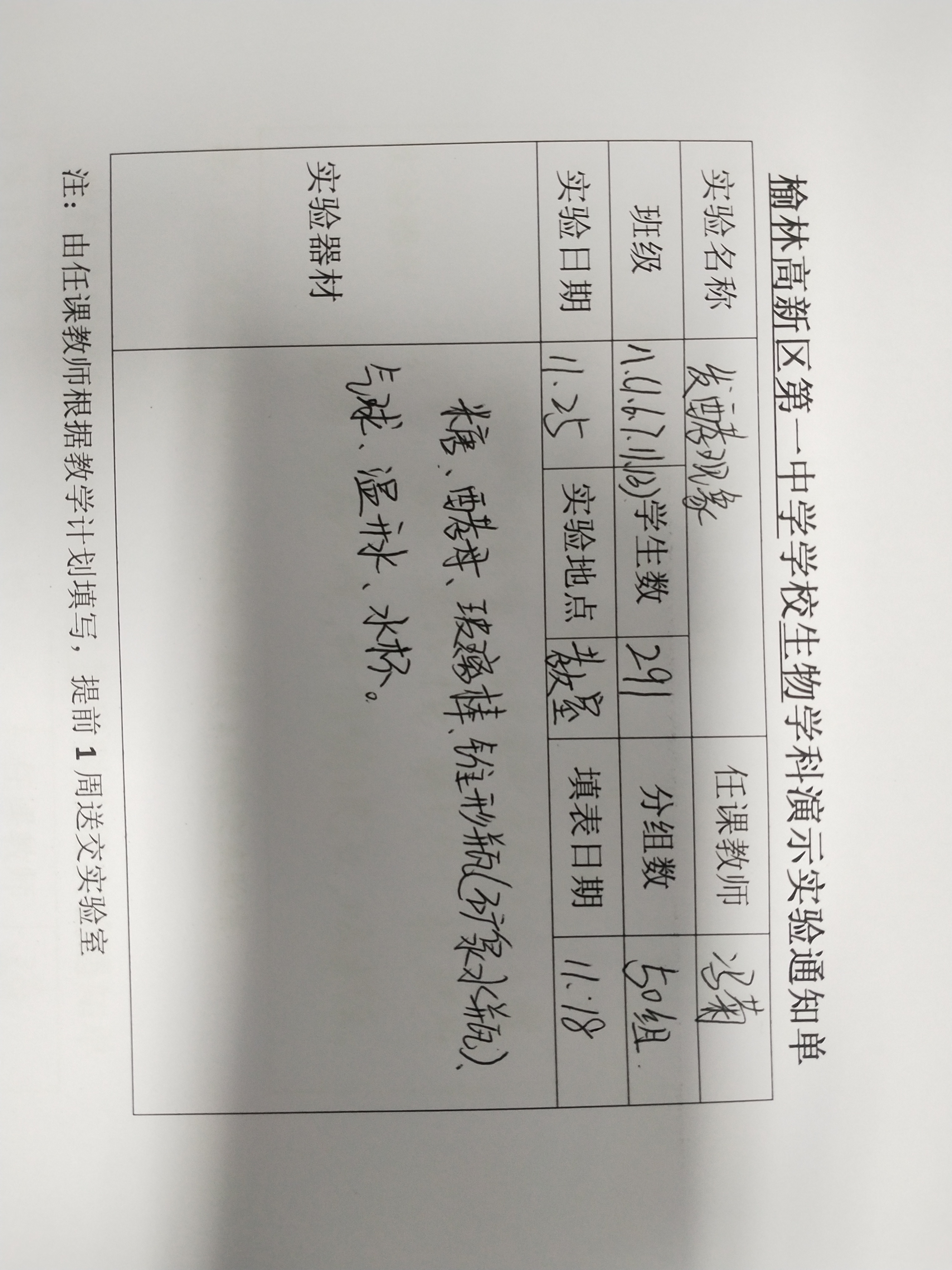 实验登记表