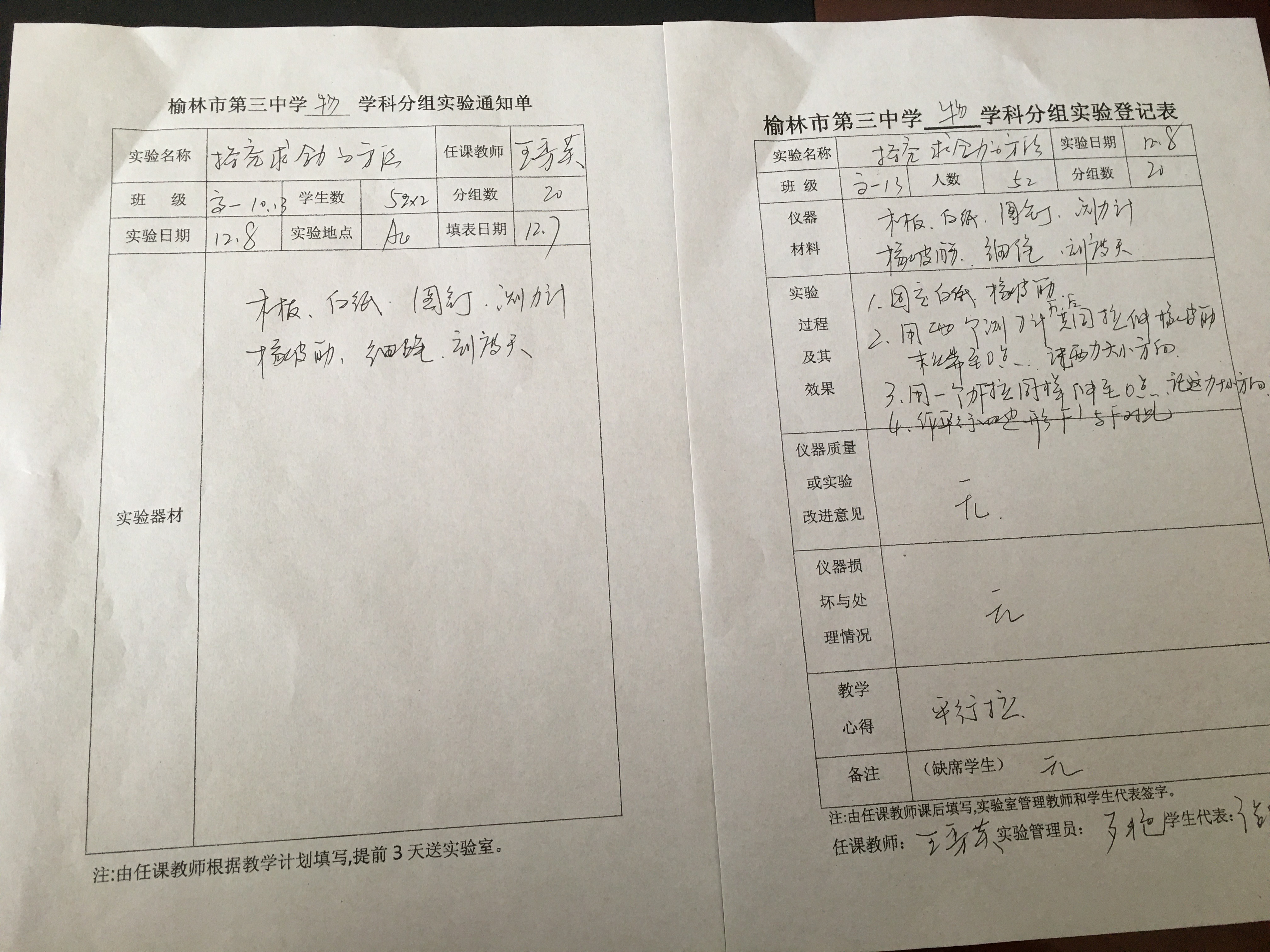 实验登记表