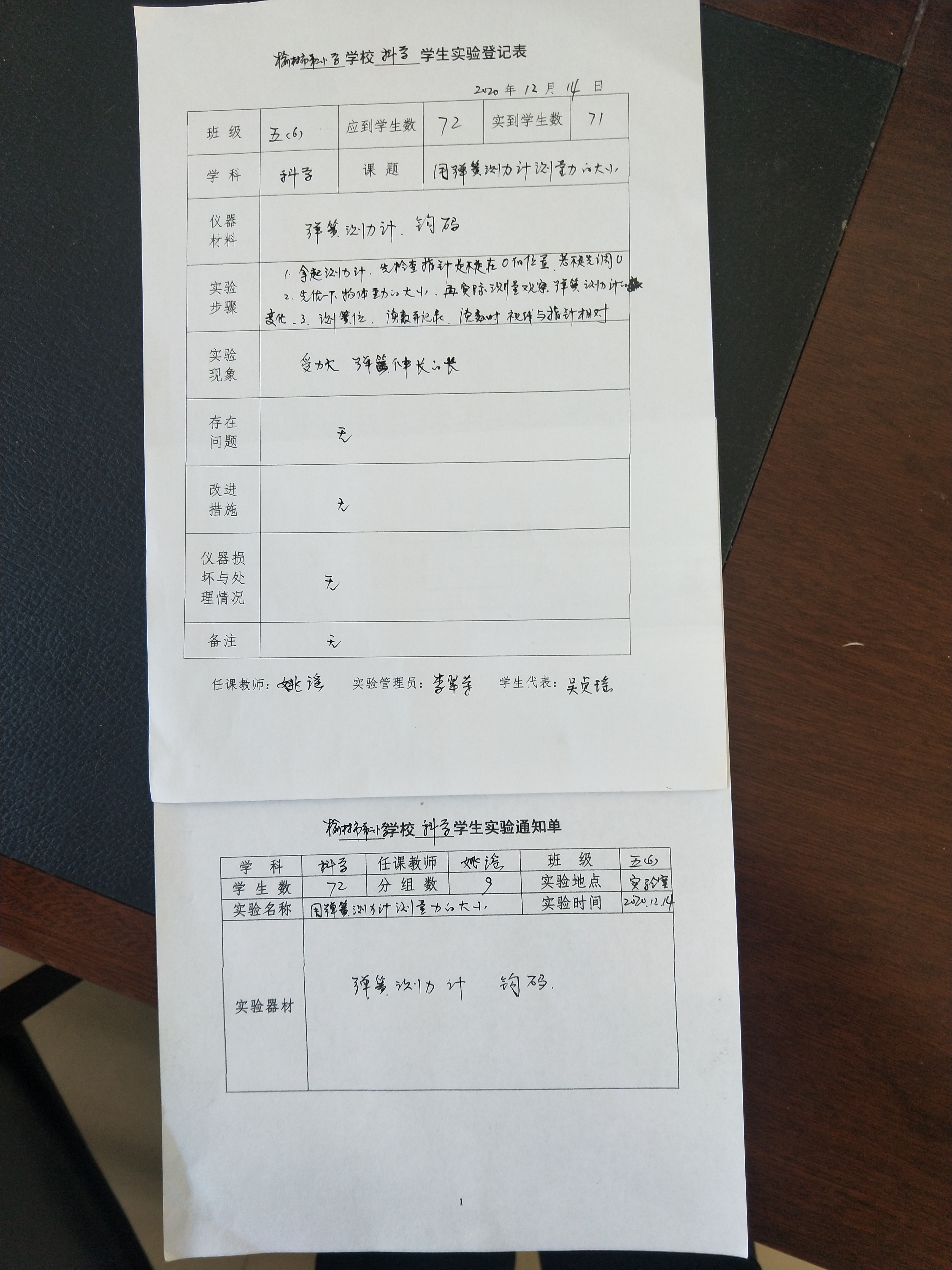 实验登记表