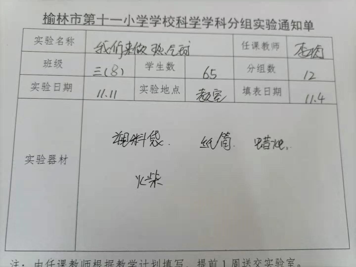 实验登记表