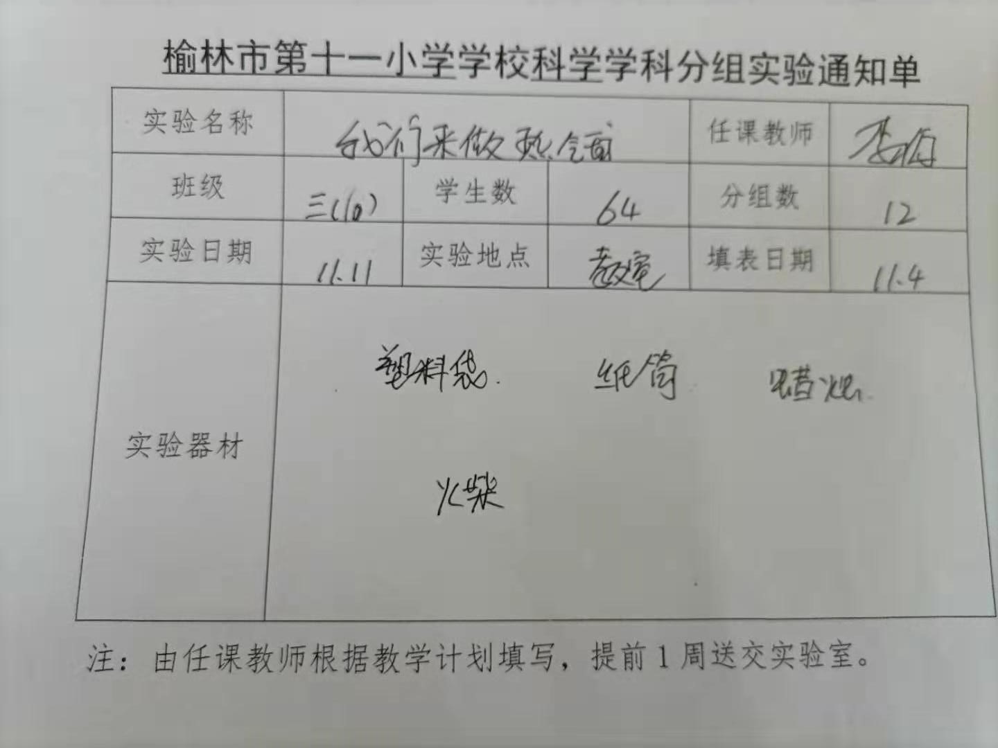 实验登记表