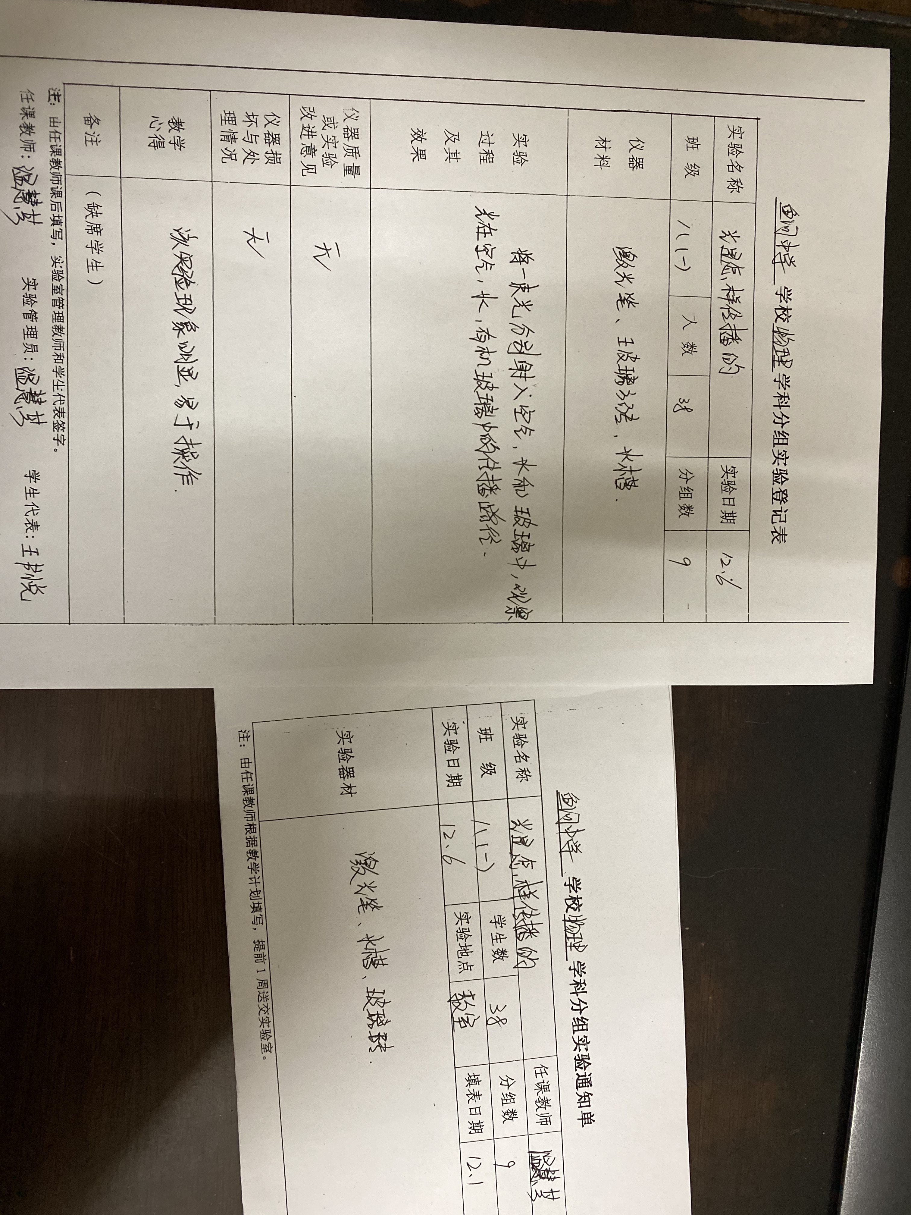 实验登记表