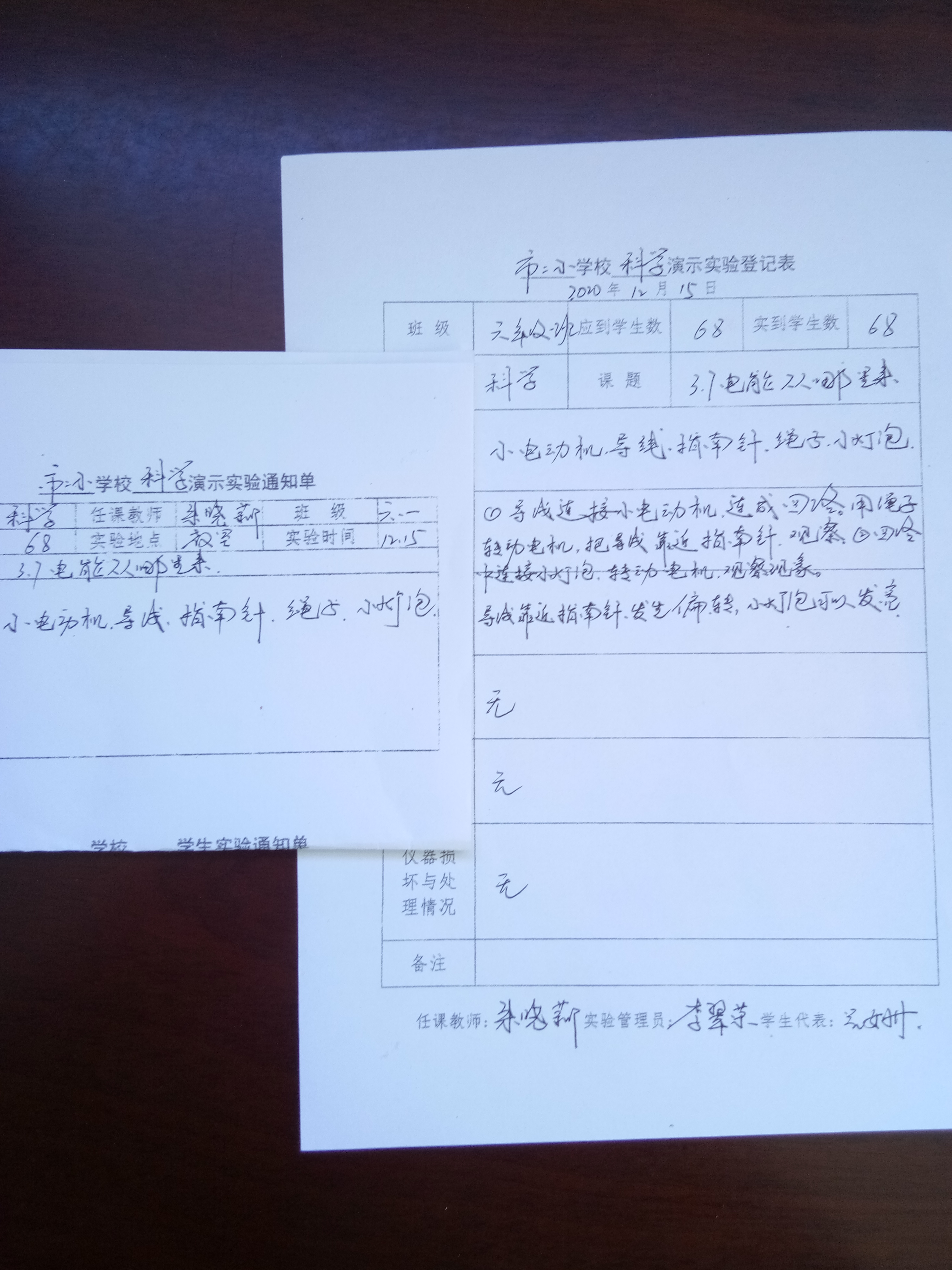 实验登记表
