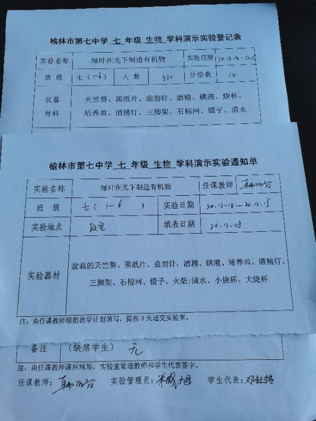 实验登记表
