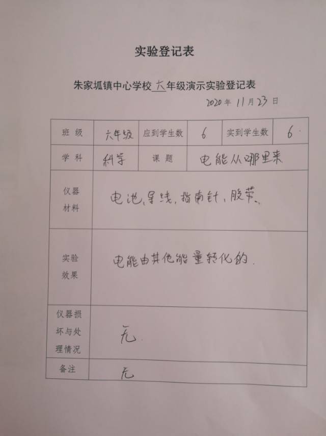 实验登记表