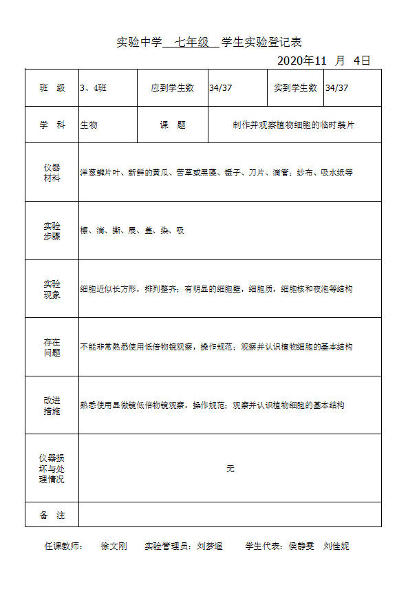 实验登记表