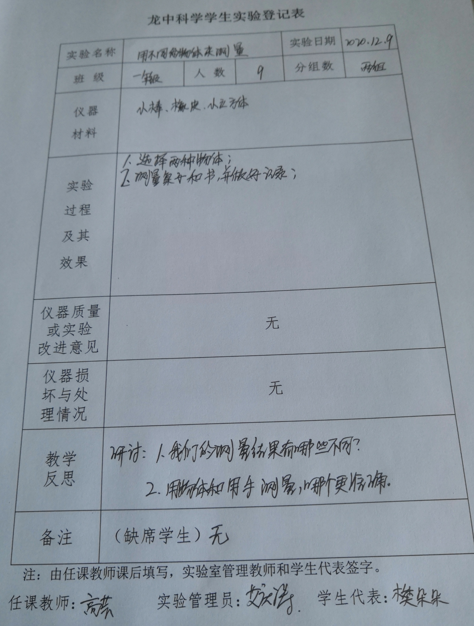 用不同的物体来测量