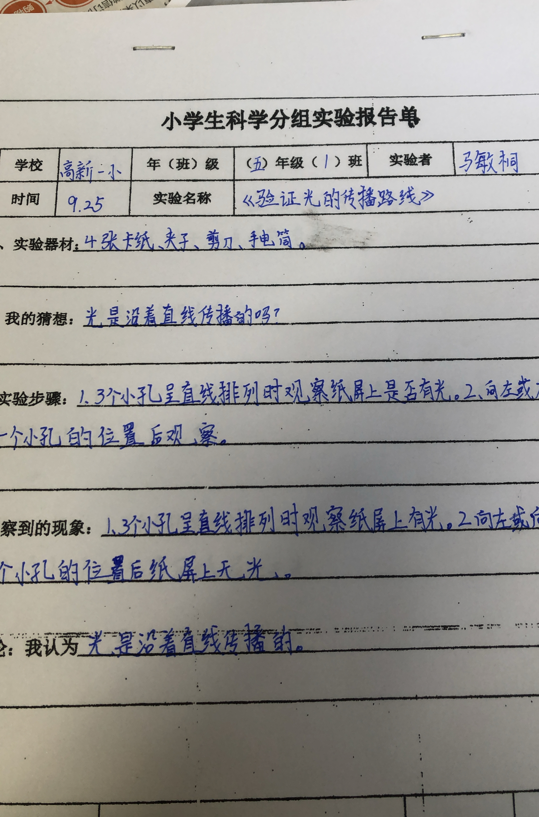 2.3验证光的传播路线