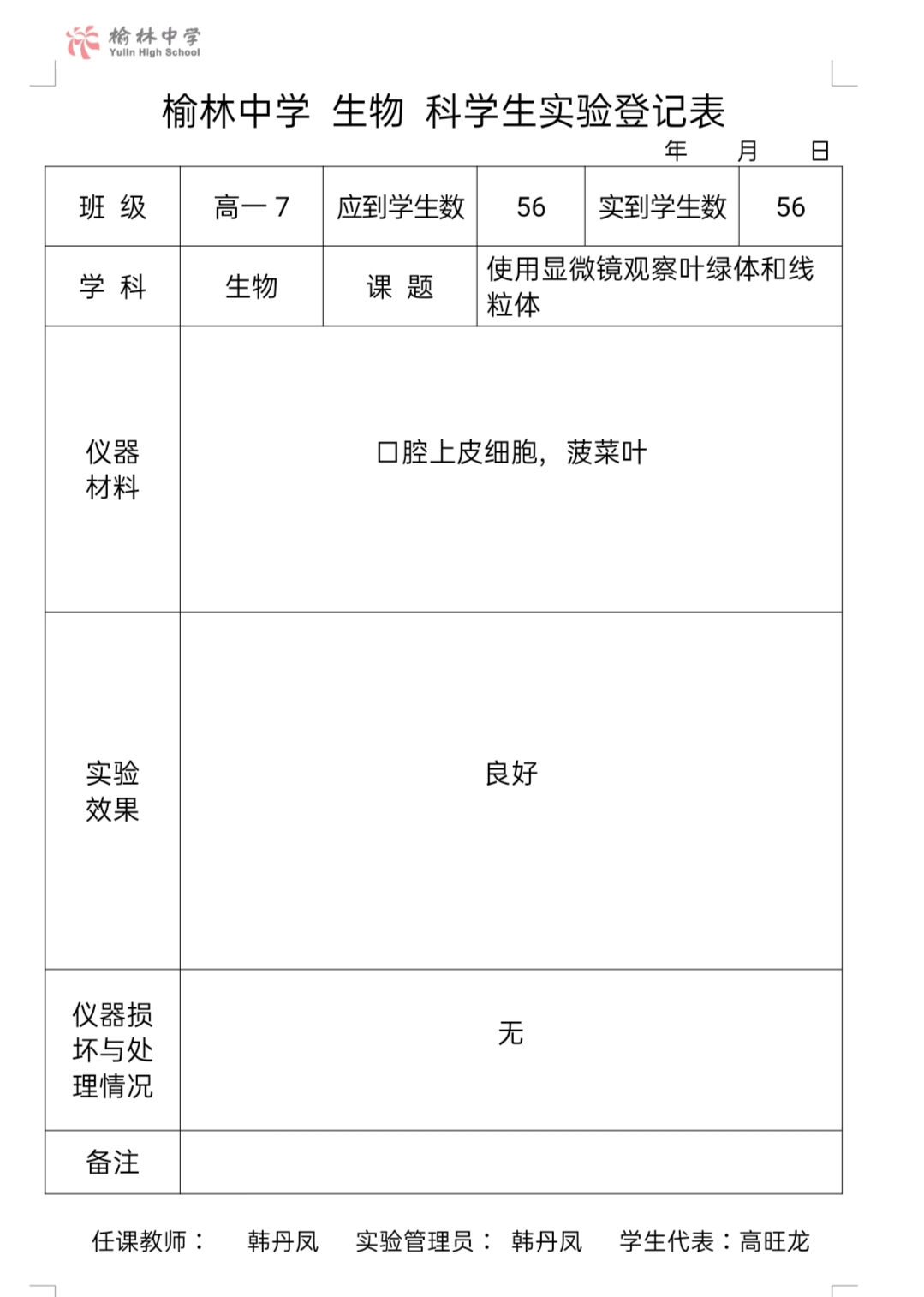 实验登记表