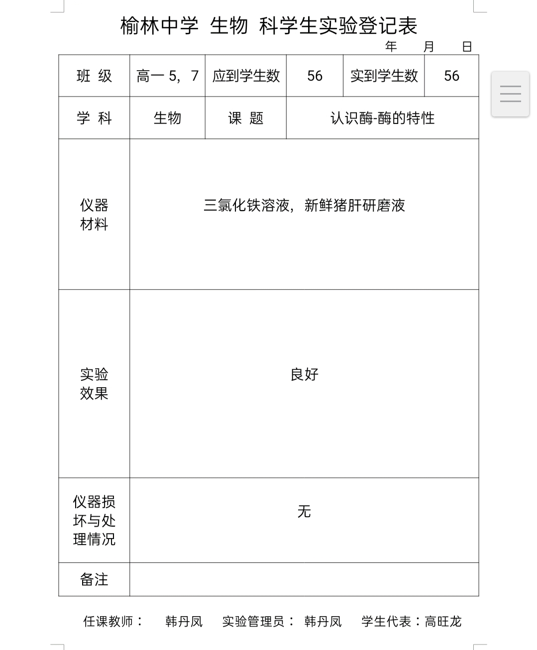 实验登记表
