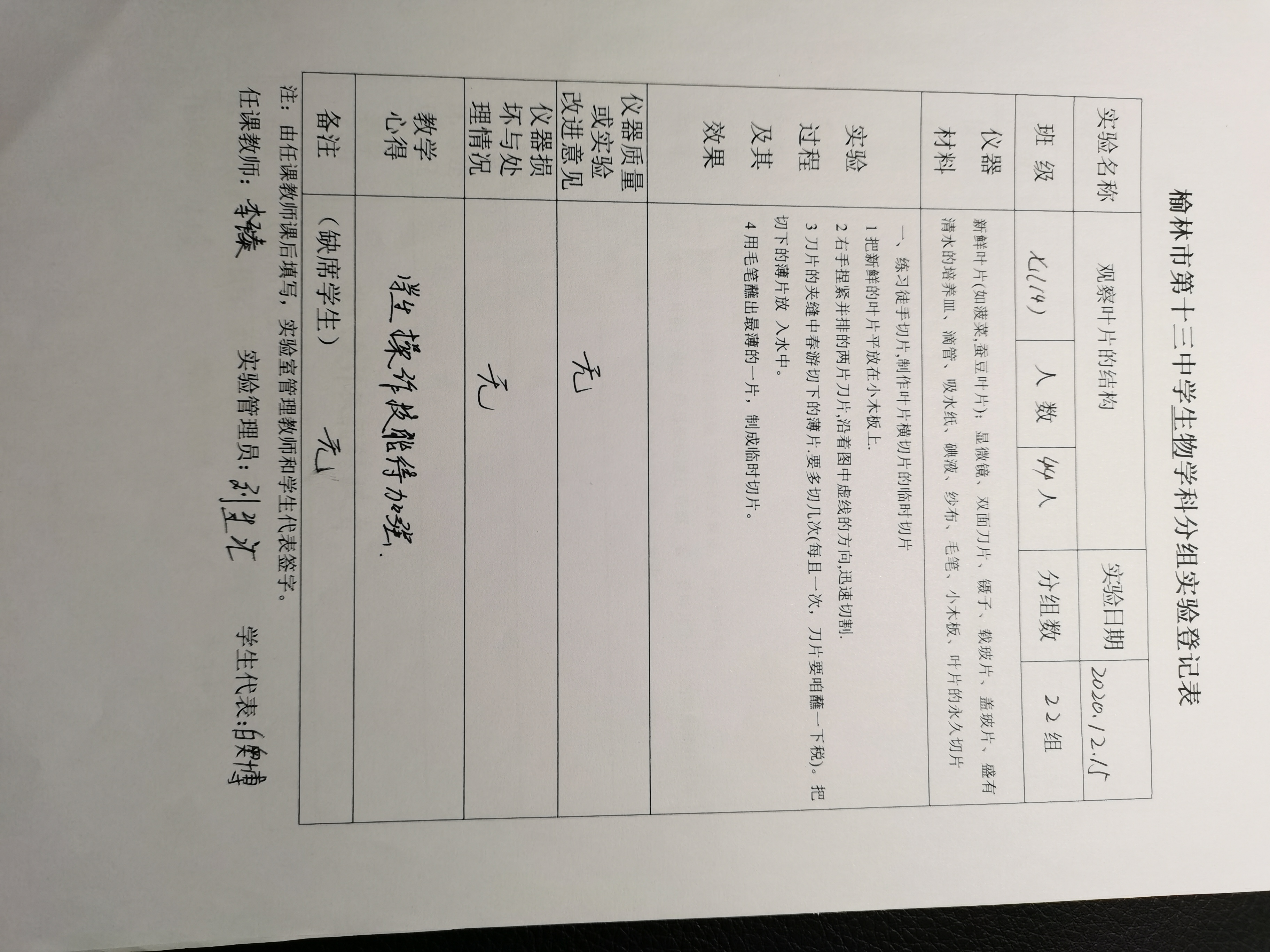实验登记表