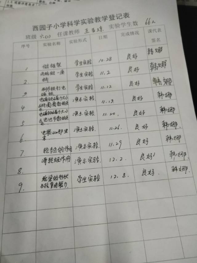 实验登记表