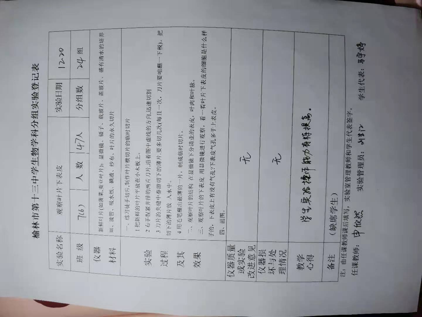 实验登记表